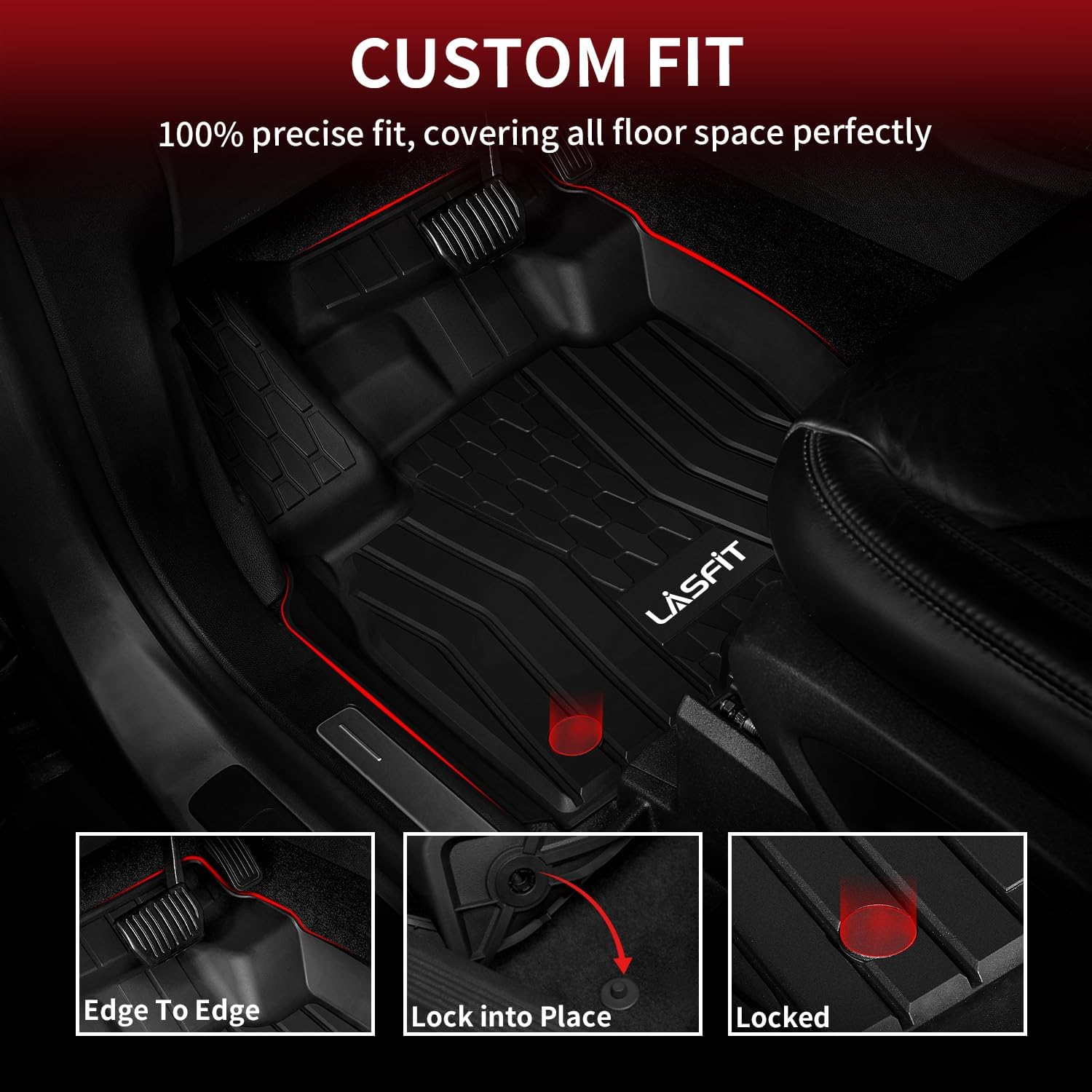 - CUSTOM FIT - State-of-the-art 3D laser scanning technology ensures custom fit to your car model with full coverage. LASFIT floor mats are precisely tailored for vehicle-specific floor carpets.