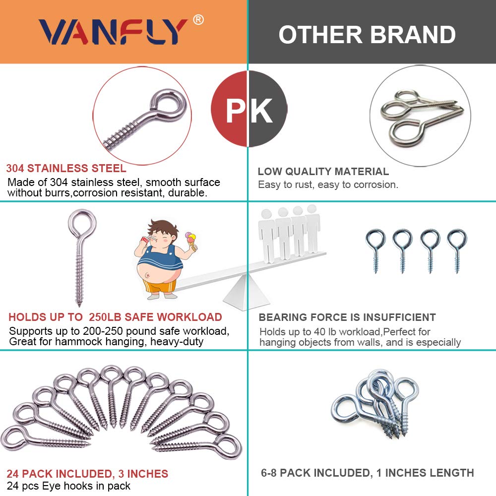 24 Pack, 3-1/5 Inch 304 Stainless Steel Eye Shape Screws Metal Hook, Heavy Duty Hanging Hooks Eyelet Screws Bolt for Yoga & Brazilian Hammocks, Swing Chair, M6 Screw (Style B)