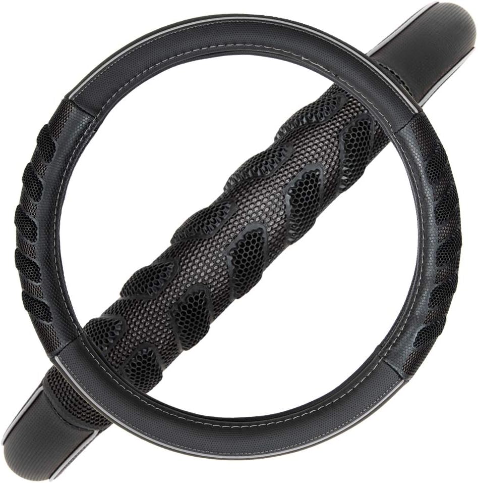 Flying Banner car Steering Wheel Cover Faux Leather Massage Universal fit 3D Honeycomb Hole Anti-Slip Sporty 15 Inches (Grey Black)