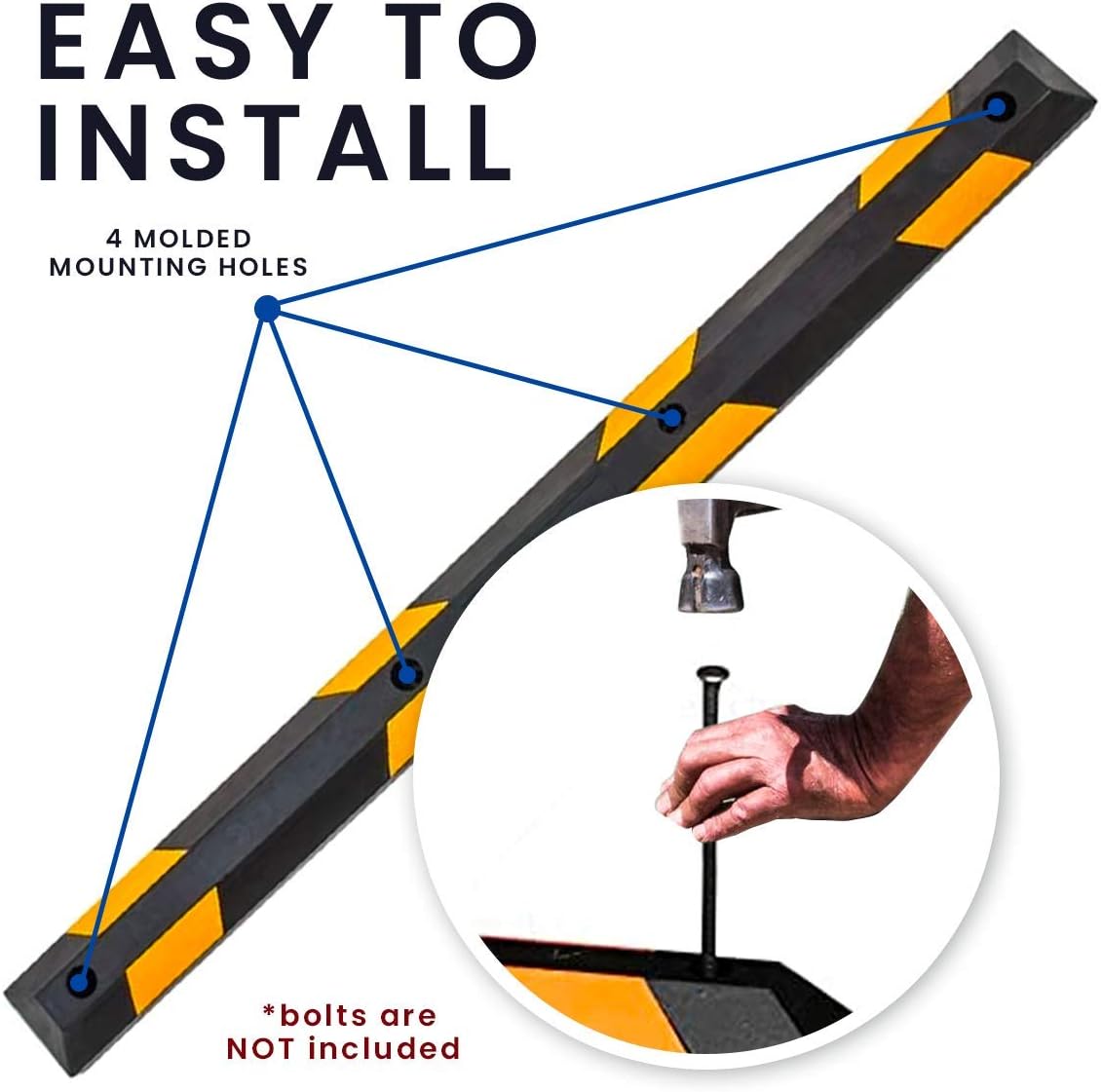 - ► EASY TO INSTALL - This rubber parking block only needs bolts and that's it! You don't need any special gadgets for it to be installed on your home or anywhere.