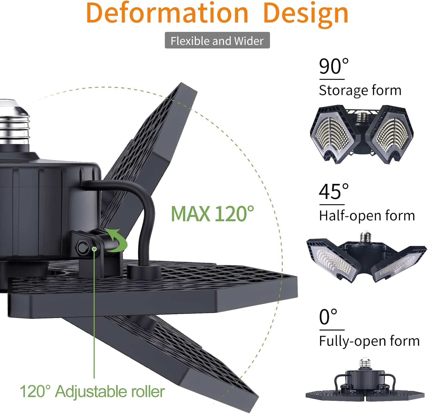 - 💡EXCELLENT HEAT DISSIPATION AND ADJUSTABLE DESIGN💡The garage light adjustable LED Panel Heads can be folded to 120°, and the maximum coverage angle can reach 360°, which can make the light cover a wide area and meet your needs for different lighting angles and areas. The ceiling light panel is made of premium material, which is more solid and more durable. The hollowed-out panel design is good for heat dissipation and stability, which helps extend the life of the light.