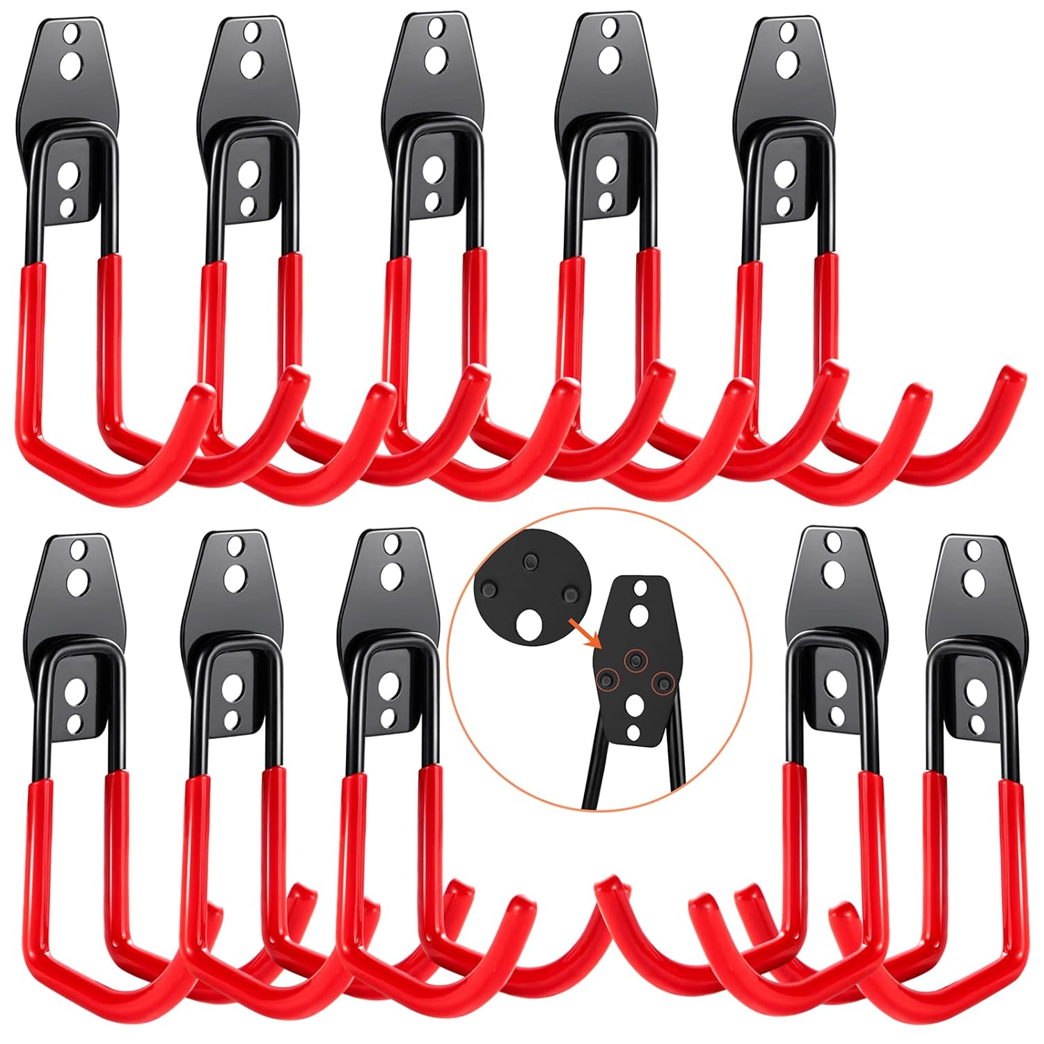 - PERFECT FOR HEAVY OBJECTS –Garage hooks is a set of 10 wall mounted double hooks,10 Big J hook . The extended length and anti-slip coating let you organise and hang heavy objects for up to 80lbs.