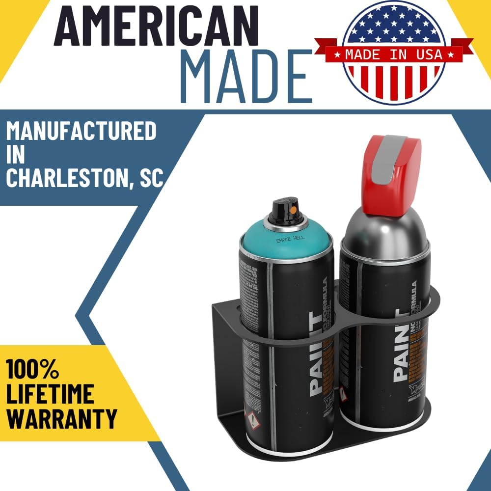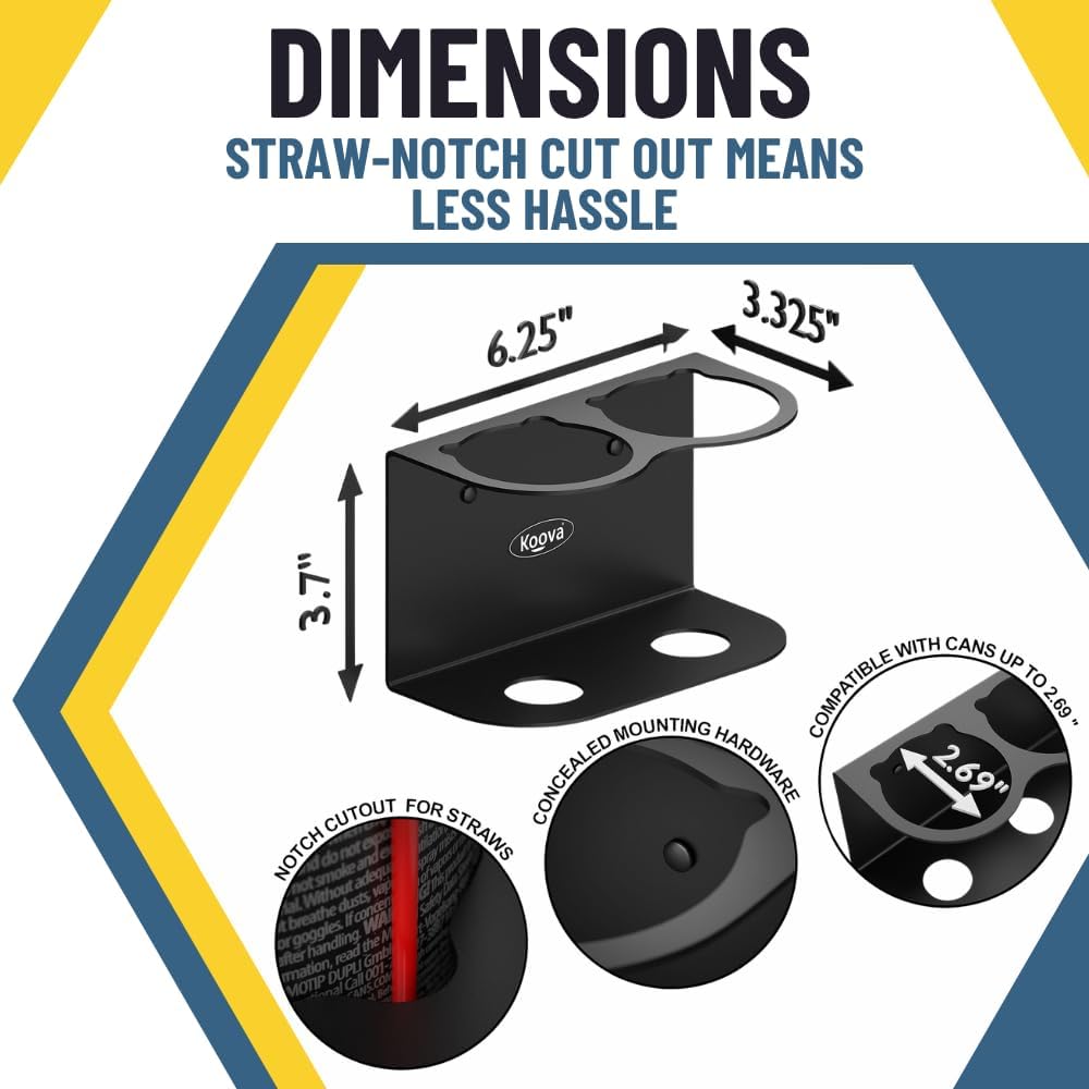 Koova 2 Aerosol Spray Can Holder | Easy Install Wall Mount | Heavy-Duty Powder Coated Steel Storage Rack for Garage & Home | Craft Workspace Paint Bottle Organizer | Hardware Included | USA Made