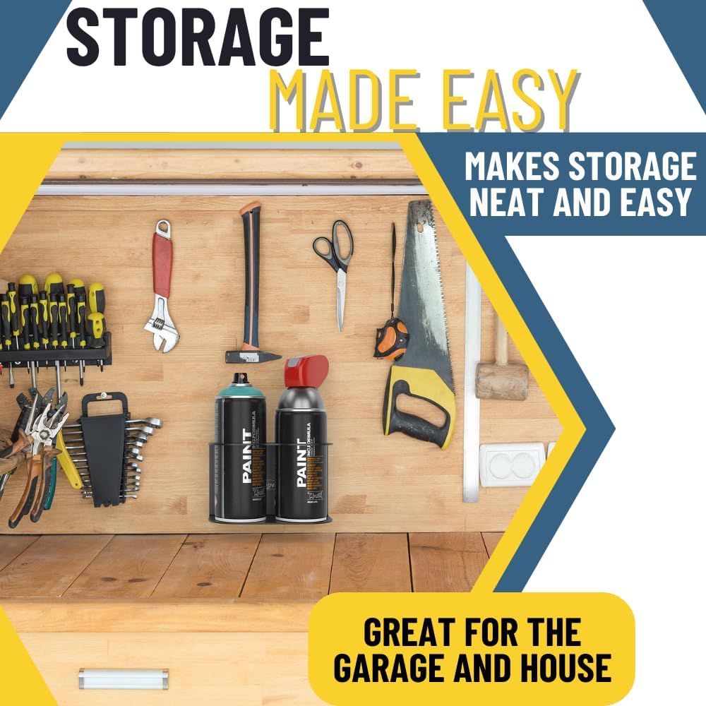 - MULTI-ORGANIZER: Koova Spray Can Holder is a sturdy, easy space-saving storage system for a variety of aerosol, paint and lubrication cans. Constructed to last a lifetime, mount in a garage, shelf or work truck. Keep everything in place and within reach!