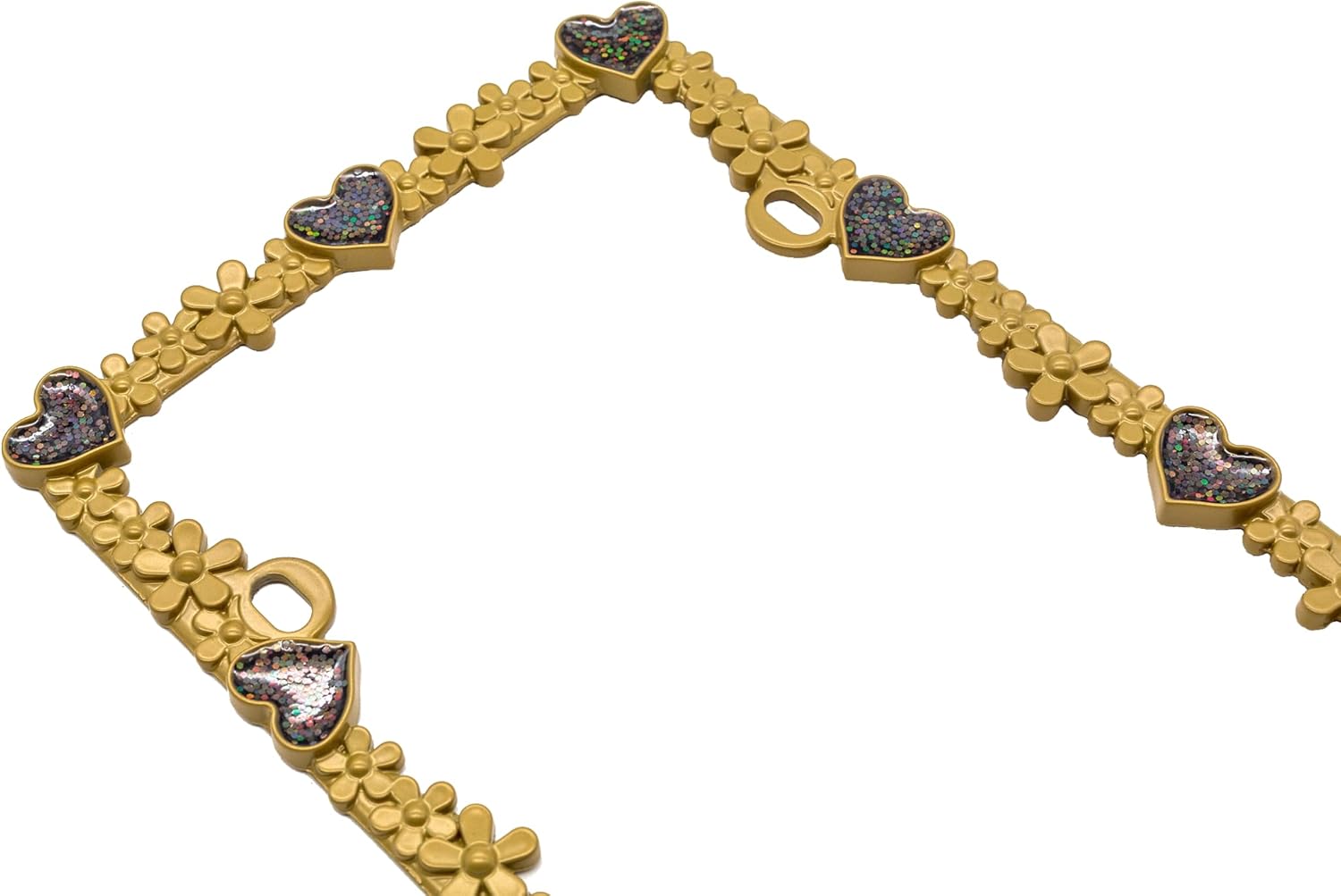 - VITALITY DESIGN - Heart and Daisy design. Matt black with silver glitter and white heart reflective stripe license plate frames. It likes a daisy chain with shining heart diamond. It makes your car feel like a princess, full of love, sweety, happiness, nature, and hope. Shining under sunshine and neon at night. Like a Starry Sky. Reflective stripe helps your car to be recognized at night. It's safer and more beautiful.