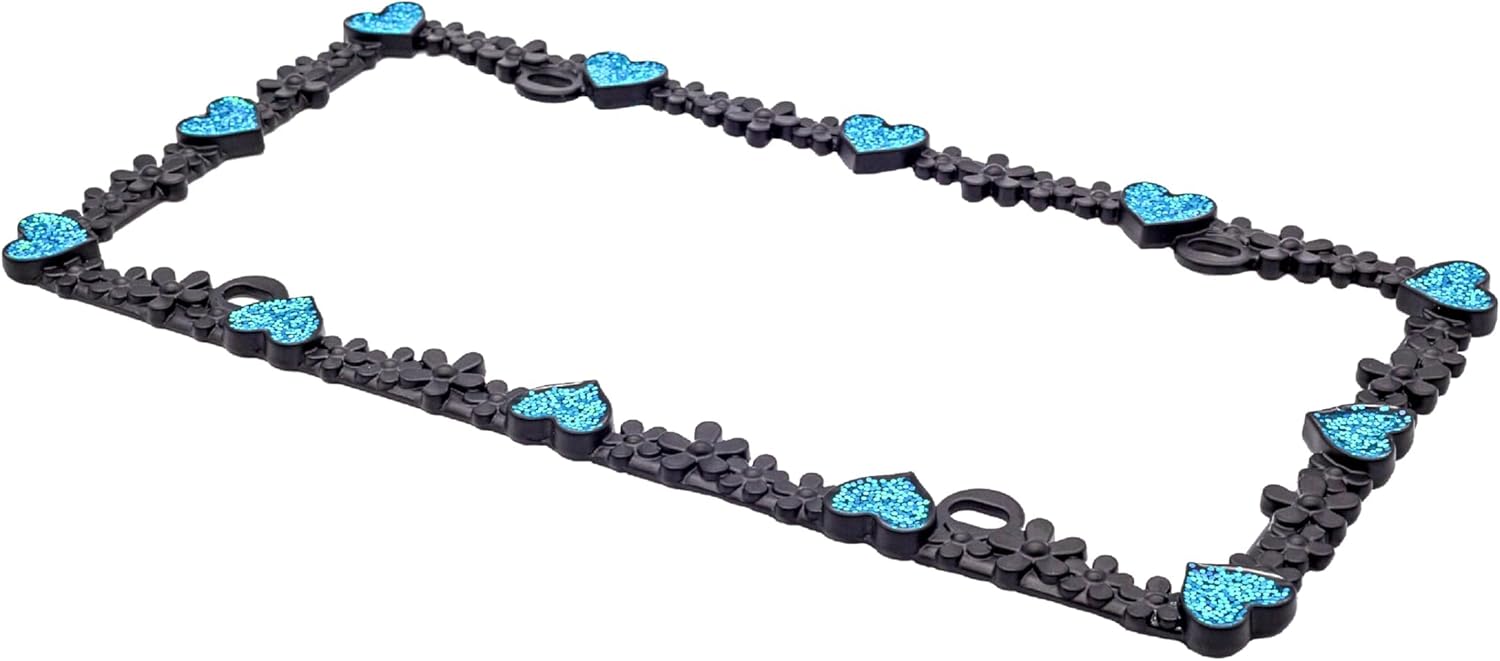 - VITALITY DESIGN - Heart and Daisy design. Matt black with silver glitter and white heart reflective stripe license plate frames. It likes a daisy chain with shining heart diamond. It makes your car feel like a princess, full of love, sweety, happiness, nature, and hope. Shining under sunshine and neon at night. Like a Starry Sky. Reflective stripe helps your car to be recognized at night. It's safer and more beautiful.