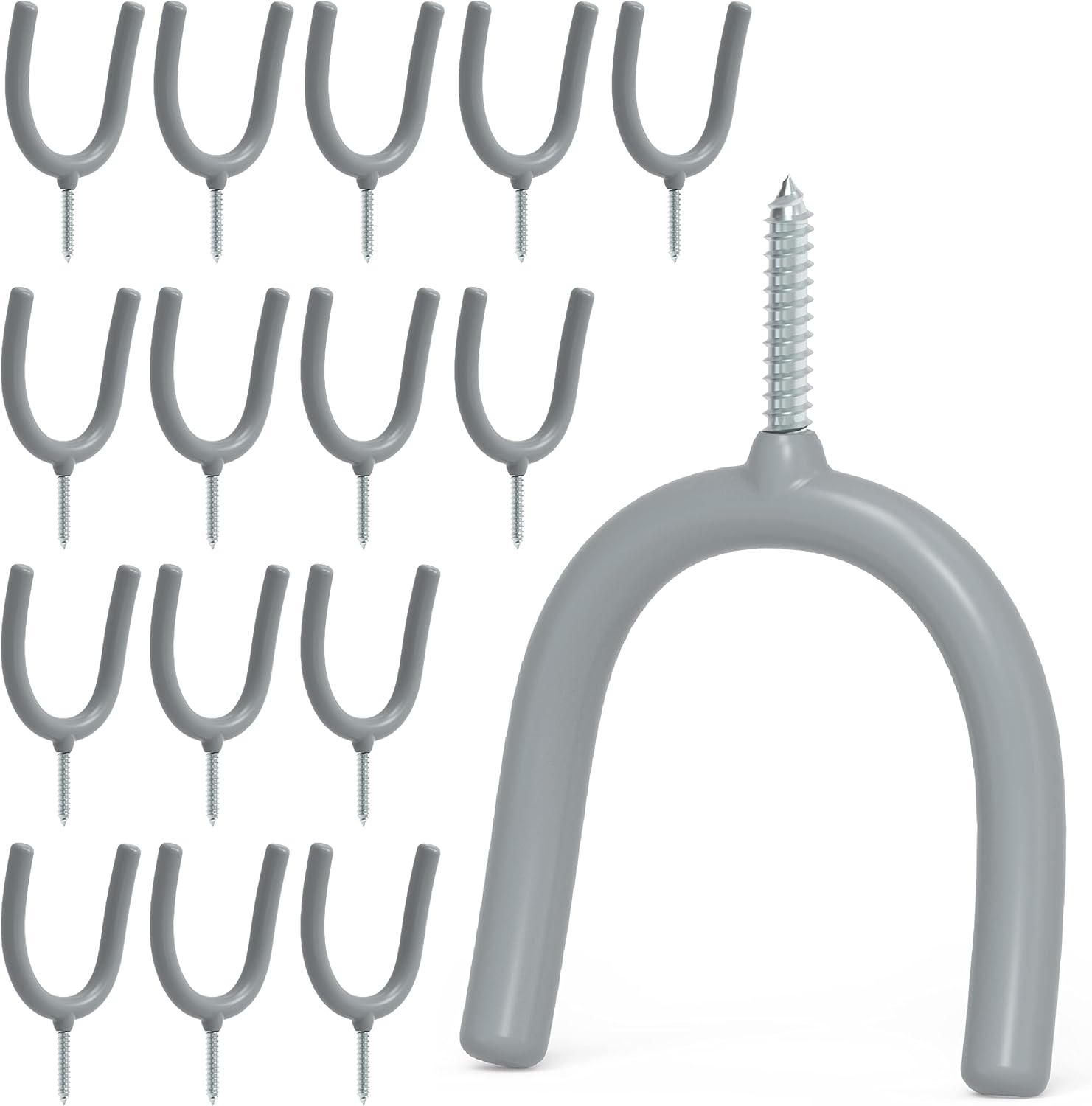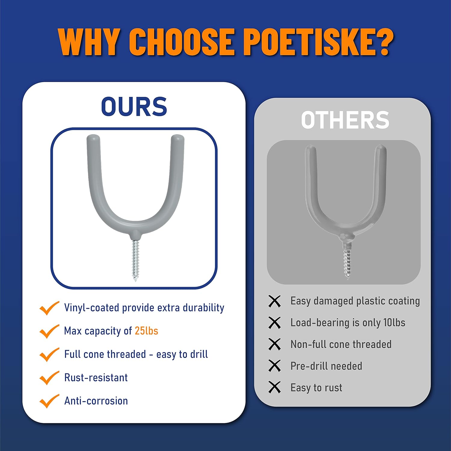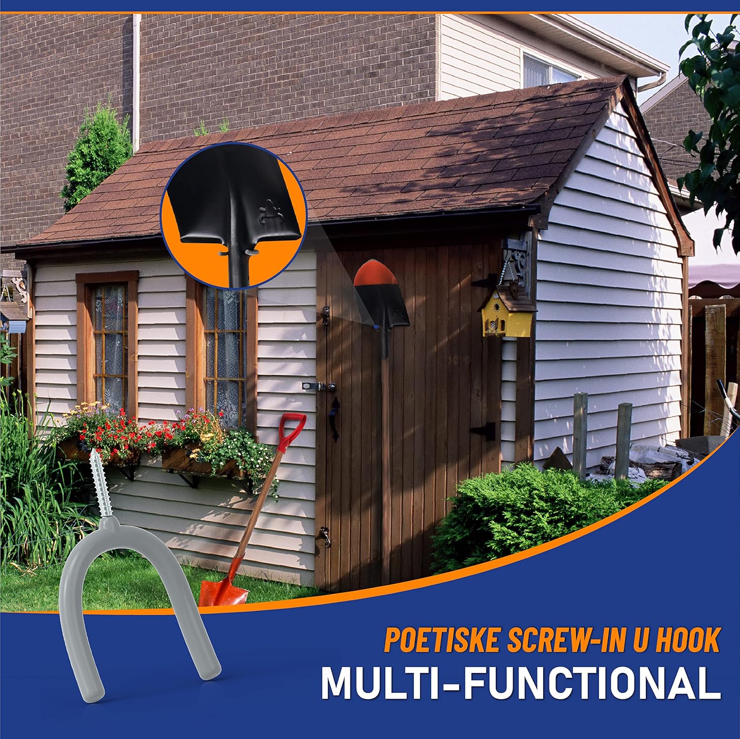 POETISKE Screw in U Utility Hooks Wall Mount Garage Storage Organizer Hanger Hanging Shovels Broom Guitar Garden Tools Heavy Duty Vinyl Holder 16pack