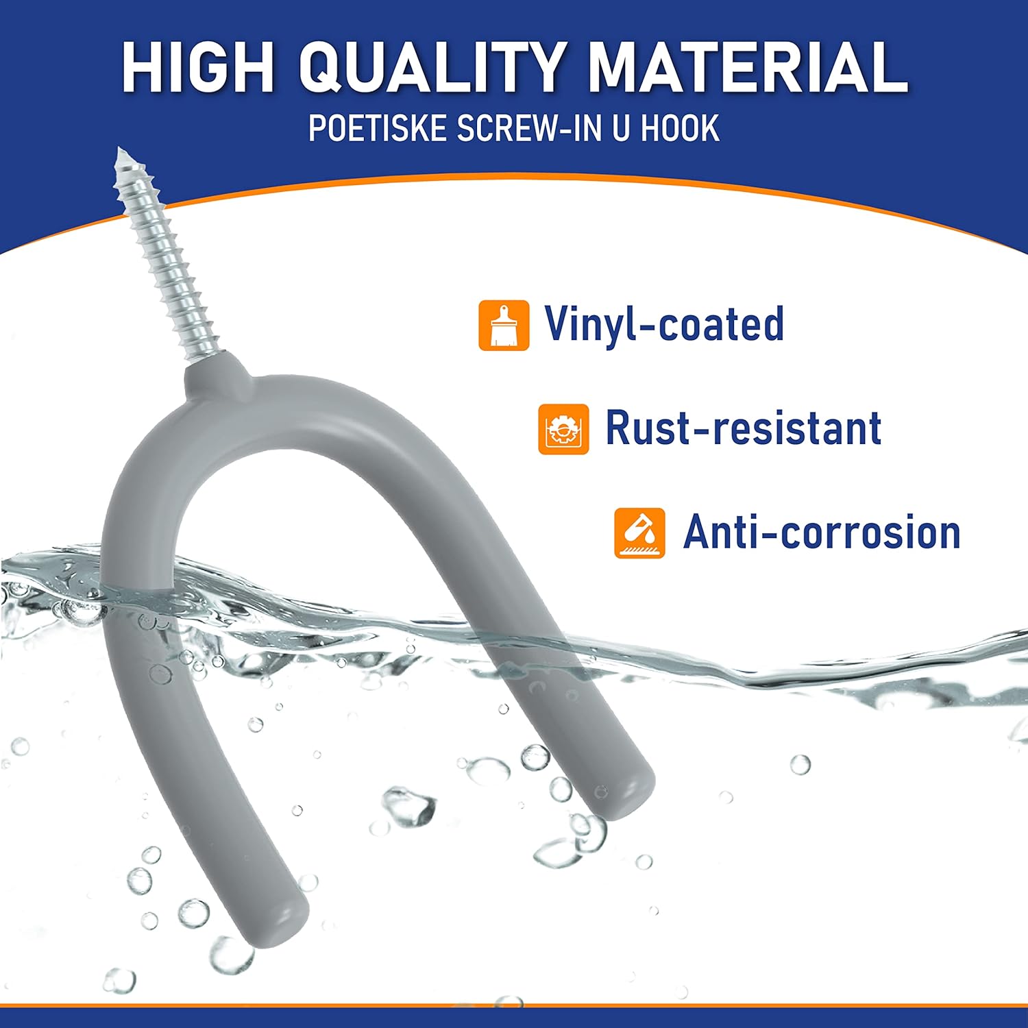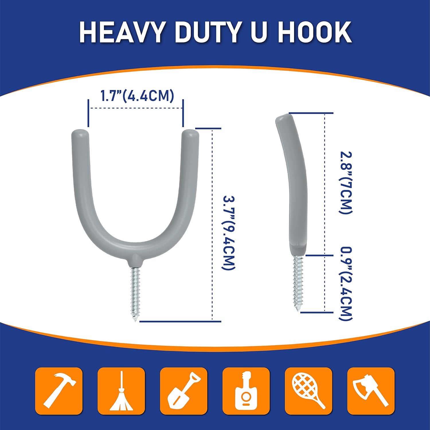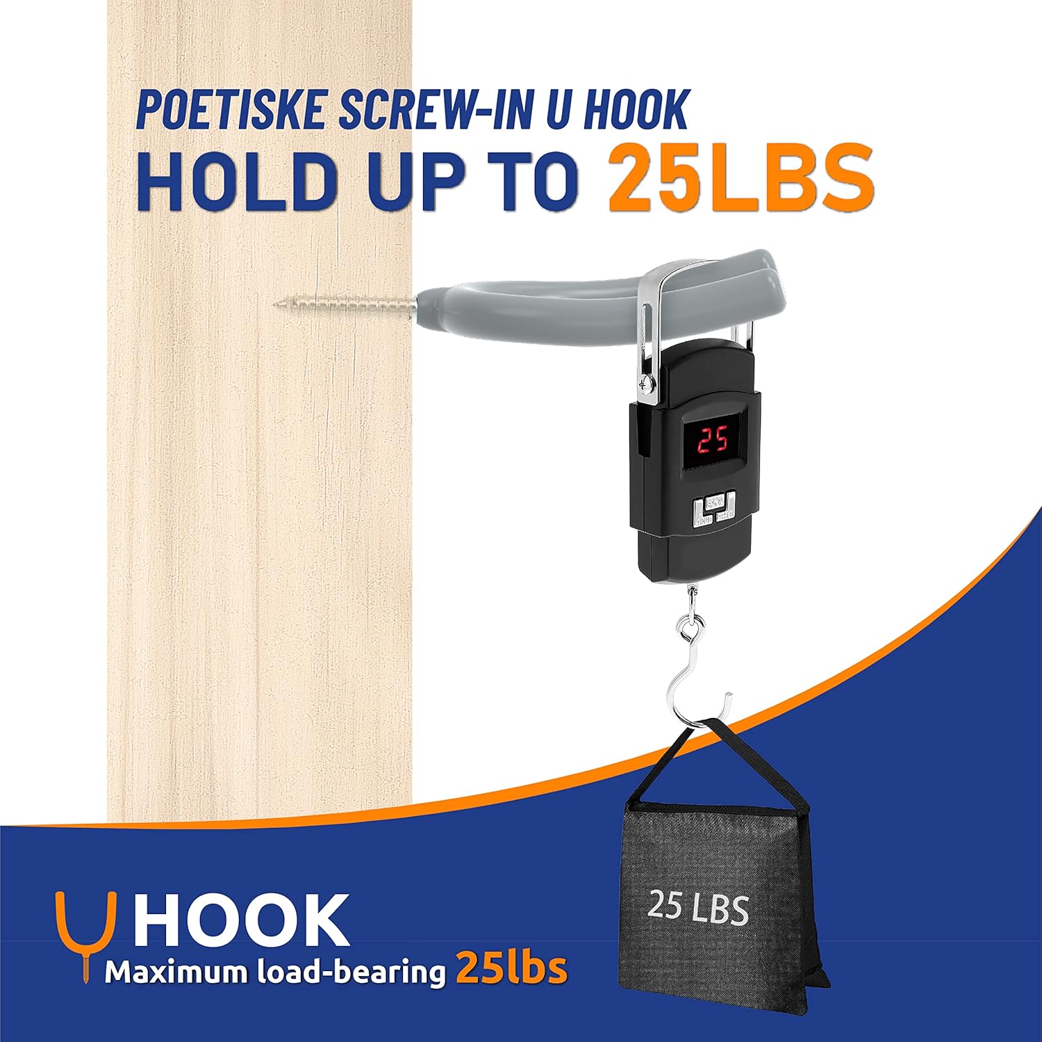 POETISKE Screw in U Utility Hooks Wall Mount Garage Storage Organizer Hanger Hanging Shovels Broom Guitar Garden Tools Heavy Duty Vinyl Holder 16pack