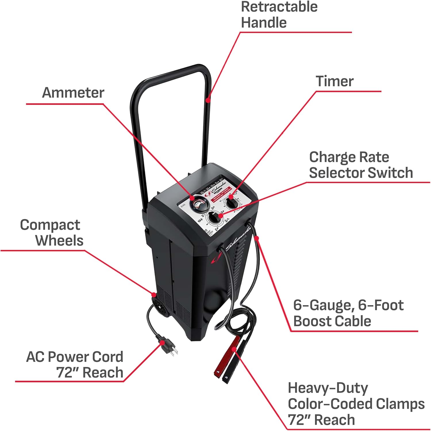 - Complete Package - Includes (1) SC1445 Manual Timer-Controlled Wheeled Battery Charger and Engine Starter, (1) user manual