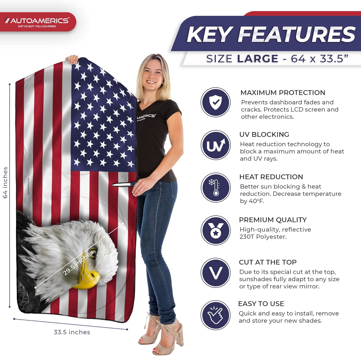 - Market-leading sun protection with an eye-catching American flag design. The new Autoamerics 1 piece USA windshield sunshades combines unbeatable sun reflecting and heat blocking capabilities. We achieve our market-leading protective performance by combining the finest reflective materials and innovative design to reflect the most scorching hot UV rays and heat.