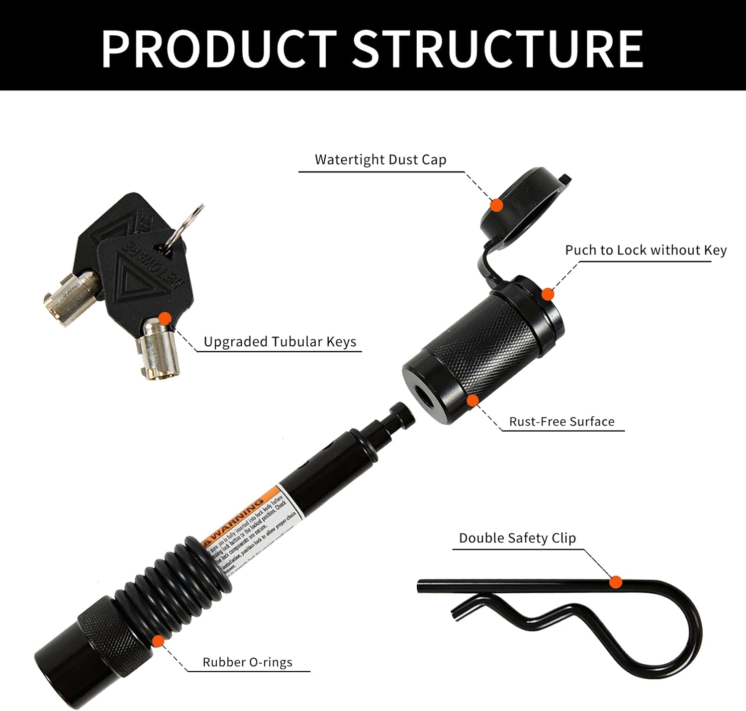 - 【PREVENT RATTLING NOISE】- Heavy duty hitch lock is equipped with 8 superior rubber O-rings to help adjust the length of the hitch pin lock, which also can effectively prevent rattling noise caused by shaking during towing.