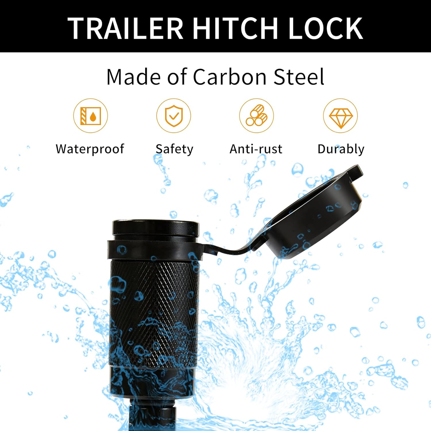 - 【WATERPROOF KEY SLOT CAP】 The all-weather cover cap of hitch lock is made of advance rubber, perfectly embed in the lock core to keep the keyhole away from water and dust. The locking hitch pin has a black durable powder paint coating to avoid rust caused by all kinds of phenomena.