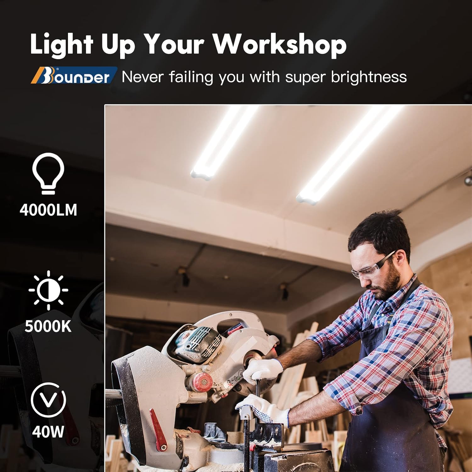 - Wide application: Bbounder led shop lights can be applied in multiple areas, such as home garages, barns, attics, workshop, workbench, utility room, shed, equipment room, tool room, etc. Let there be light!