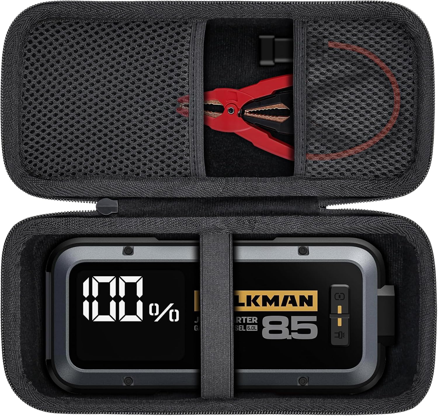 - Reasonable Storage of Jump Starter Accessories:Built-in mesh pocket can store the booster clamps of your hulkman alpha85/85s/pro jump starter, when your booster clamps and alpha85/85s/pro battery starter are put together, you can find it quickly when you need to use it.