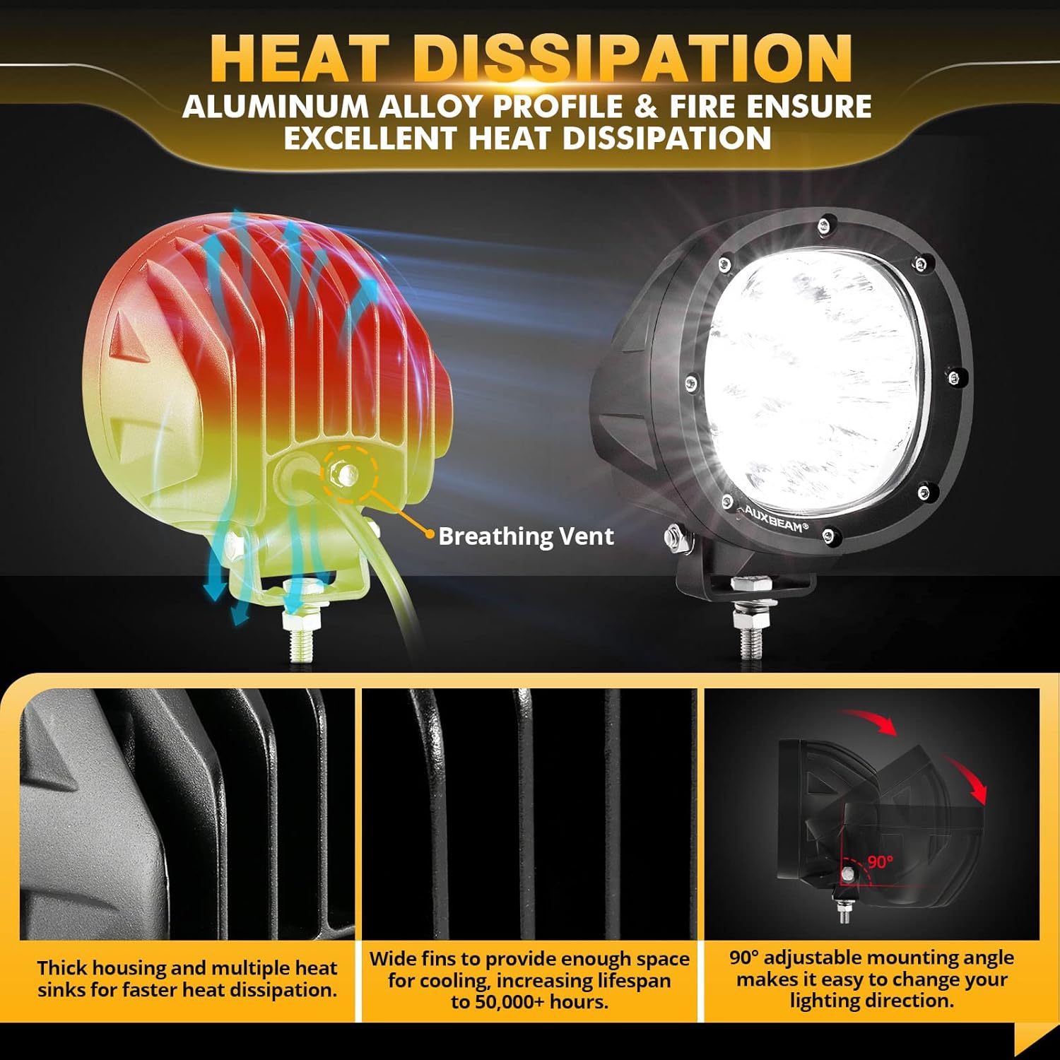 - 【IP68 Waterproof Dustproof Shockproof】All led pods are burn-in and waterproof, dustproof, rustproof, and quake-proof tested before leaving the factory. Auxbeam follows strict 100% quality inspection instead of sample inspection to ensure its excellent waterproof performance and keep these round offroad lights away from moisture.