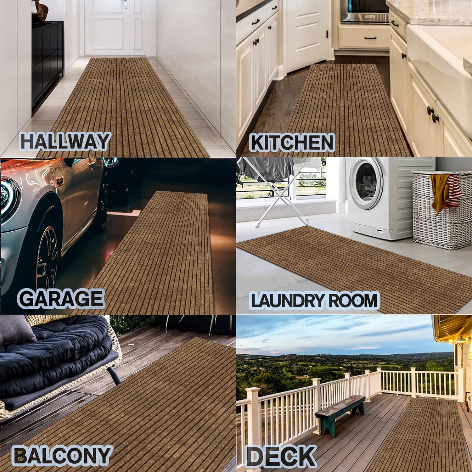 Custom Size Backed Non-Slip Area Rugs Runner, Easy Clean, Waterproof Runner Rugs for Hallway Entryway, Kitchen, Laundry, 2FT x 20FT, Brown Stripe