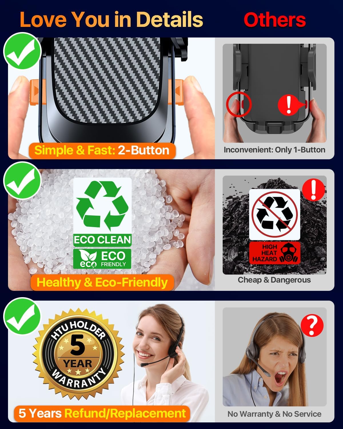 HTU 2025 Best Car Phone Holder ใUltimate 5-in-1 & Upgraded 100+LBS Strongest SuctionใใTrue Military-Grade & Safety Certใ 360ยฐ Windshield Dashboard Vent Mount Stand for iPhone Android & Truck, Black