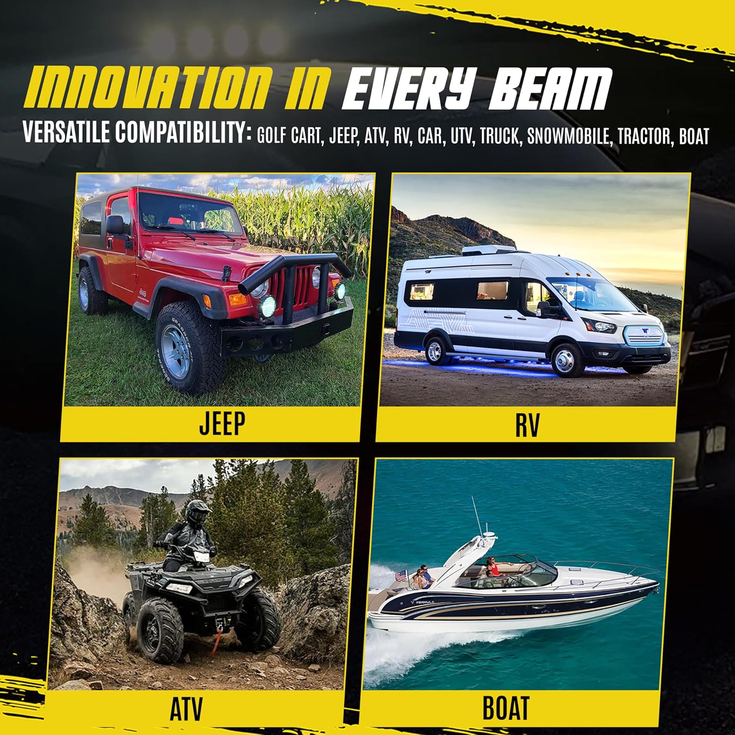 - Easy Mount & SS Brackets: Equipped with 316 stainless steel brackets, the slim LED pods lights can be easily adjusted both vertically (up to 90 degrees) and horizontally (up to 360) for off-road driving, seeding, plowing, harvesting, farming, and more.