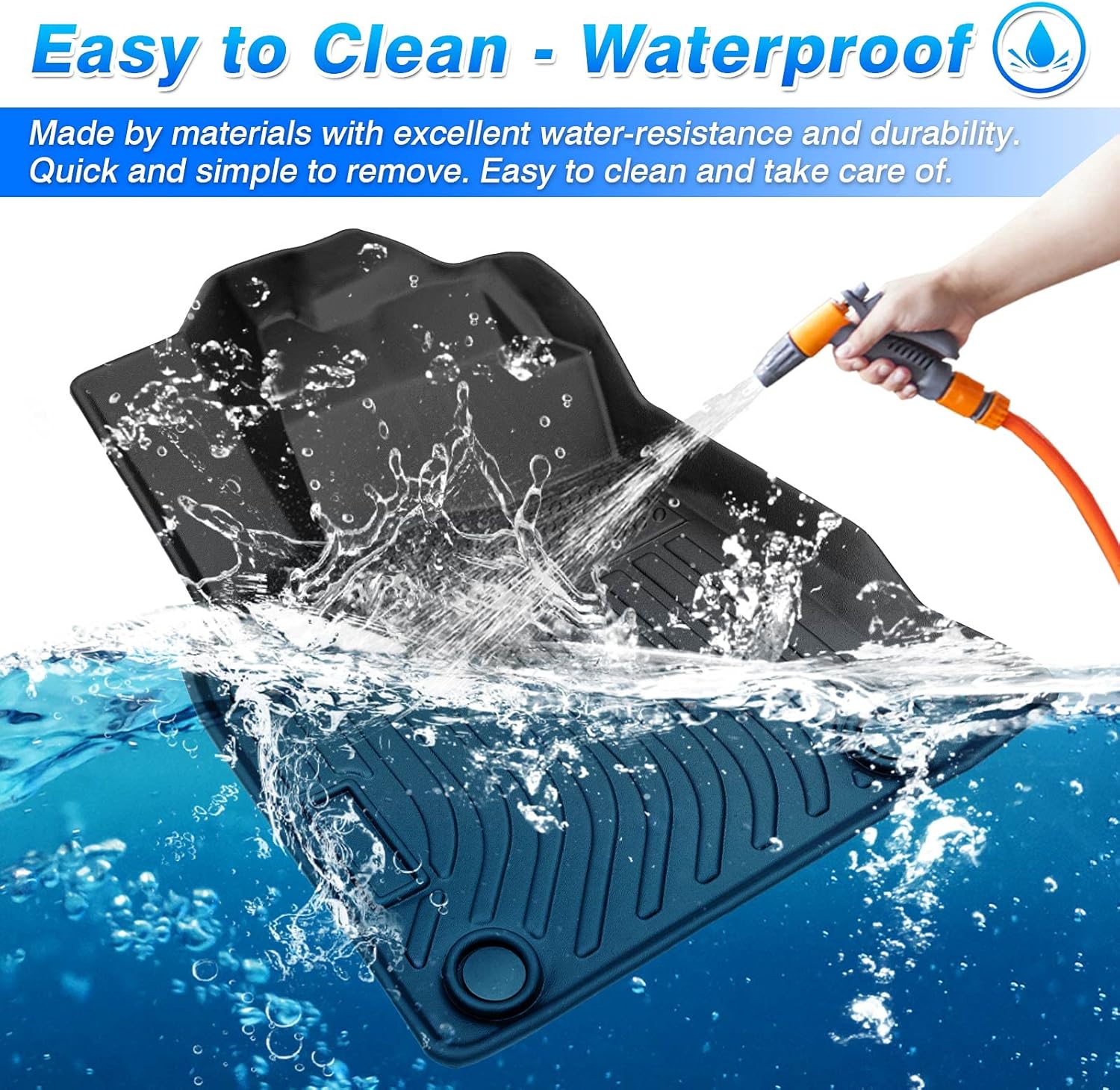 - All Weather Protect & Cleaning -- The carpet cover are waterproof, and the groove design forming channels to collects water, mud, snow, debris, ect, to avoid accidental skidding and stain to original car carpets. Easy to clean by rinsing it with water, and dry with towel.