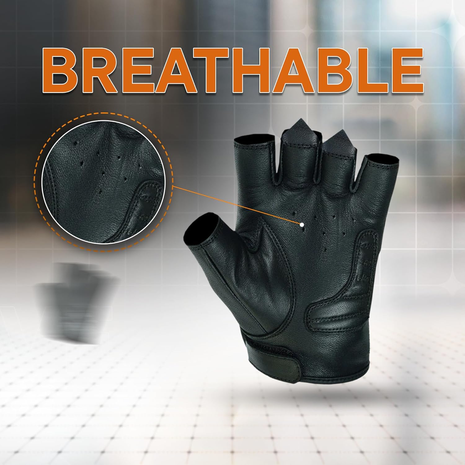 • Premium Leather: Daniel Smart Fingerless Motorcycle Gloves are made of excellent Goatskin leather that provides natural protection and will not tear or crack when exposed to conditions like sunlight, heat, or moisture.