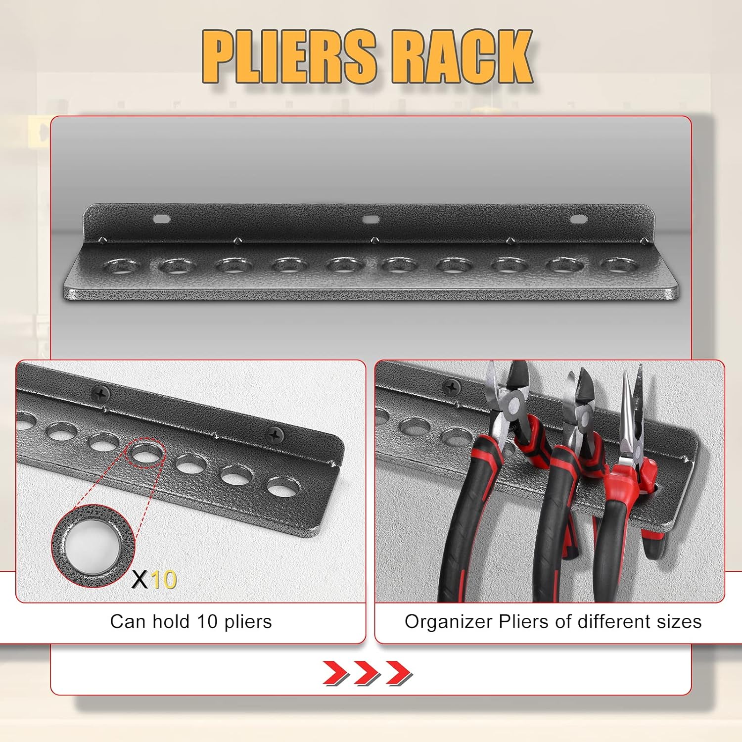 - 【LARGE CAPACITY】 The wall-mounted tool rack set is qualified to hold up to 25pcs screwdrivers, 9 for pliers and 5 hammers. These 3 shelves can accommodate different sizes of screwdrivers, pliers and hammers.