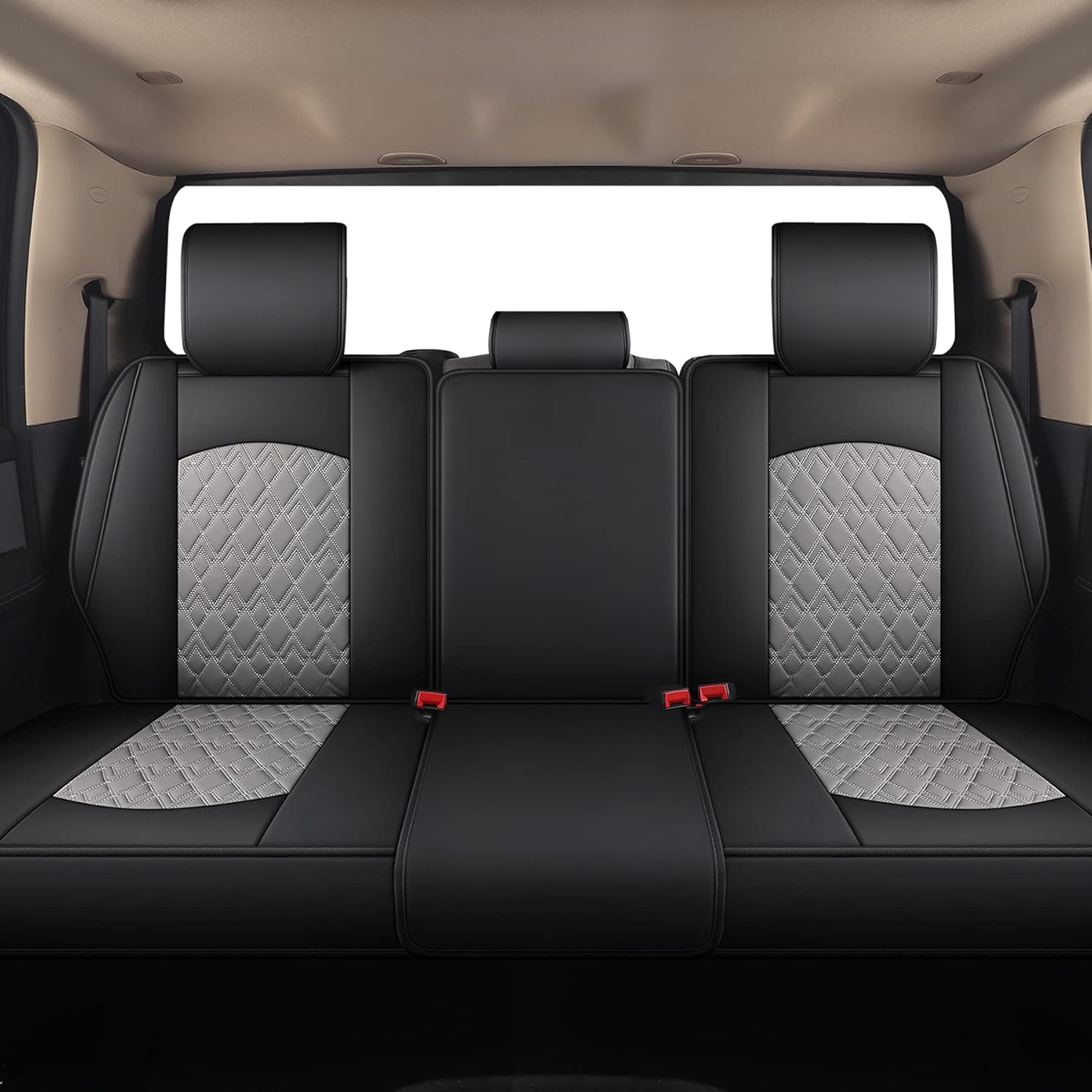 JOJOBAY Car Seat Covers for Dodge Ram Full Set,Fit Ram 2009-2025 1500/2500/3500 Pick-up Truck,Crew,Regular,Quad,Mega Cab,Waterproof Leather Seat Covers Protectors(5 PCS Full Set,Black-Grey)