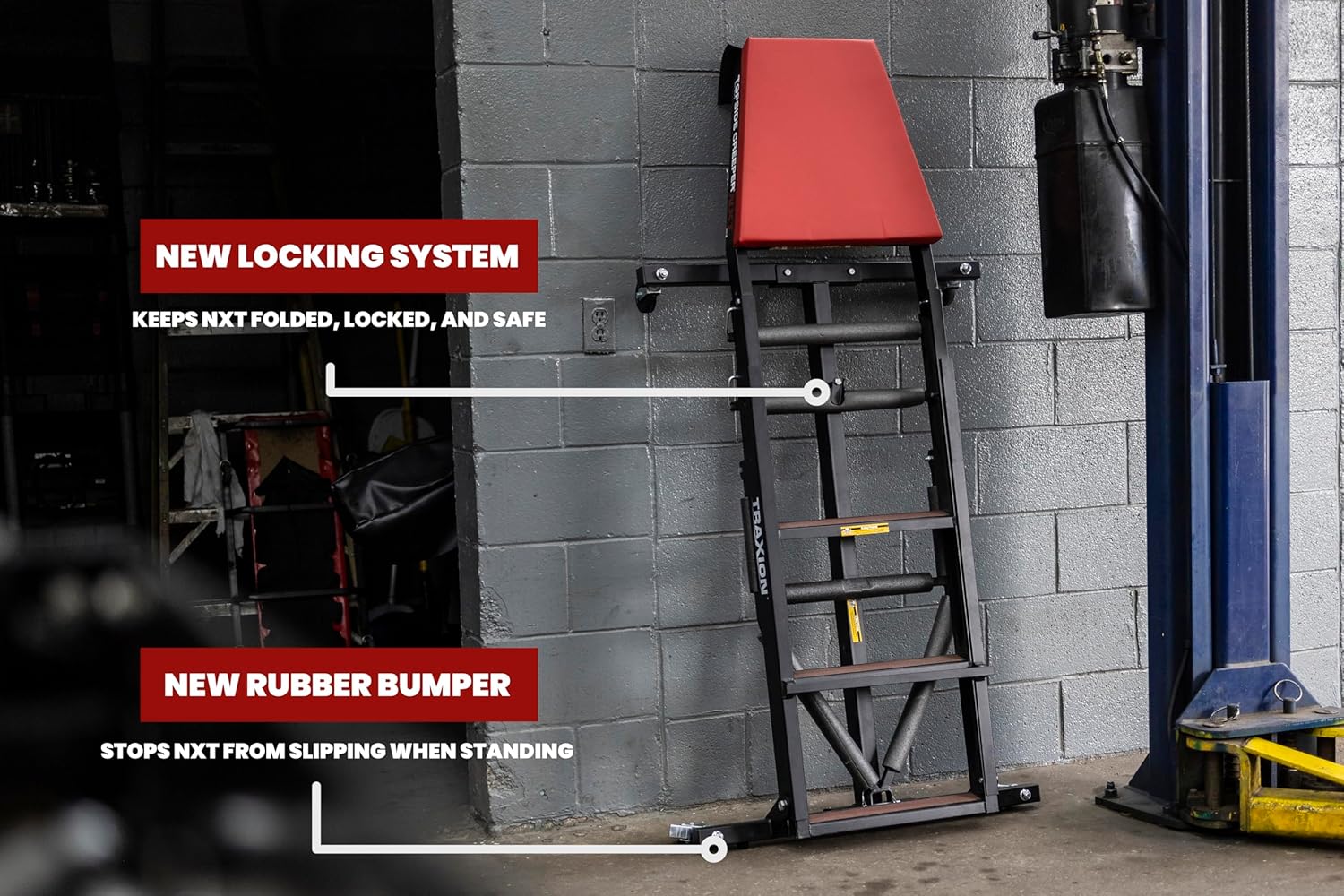 - The Topside Creeper NXT folds flat for easy and compact storage when not in use