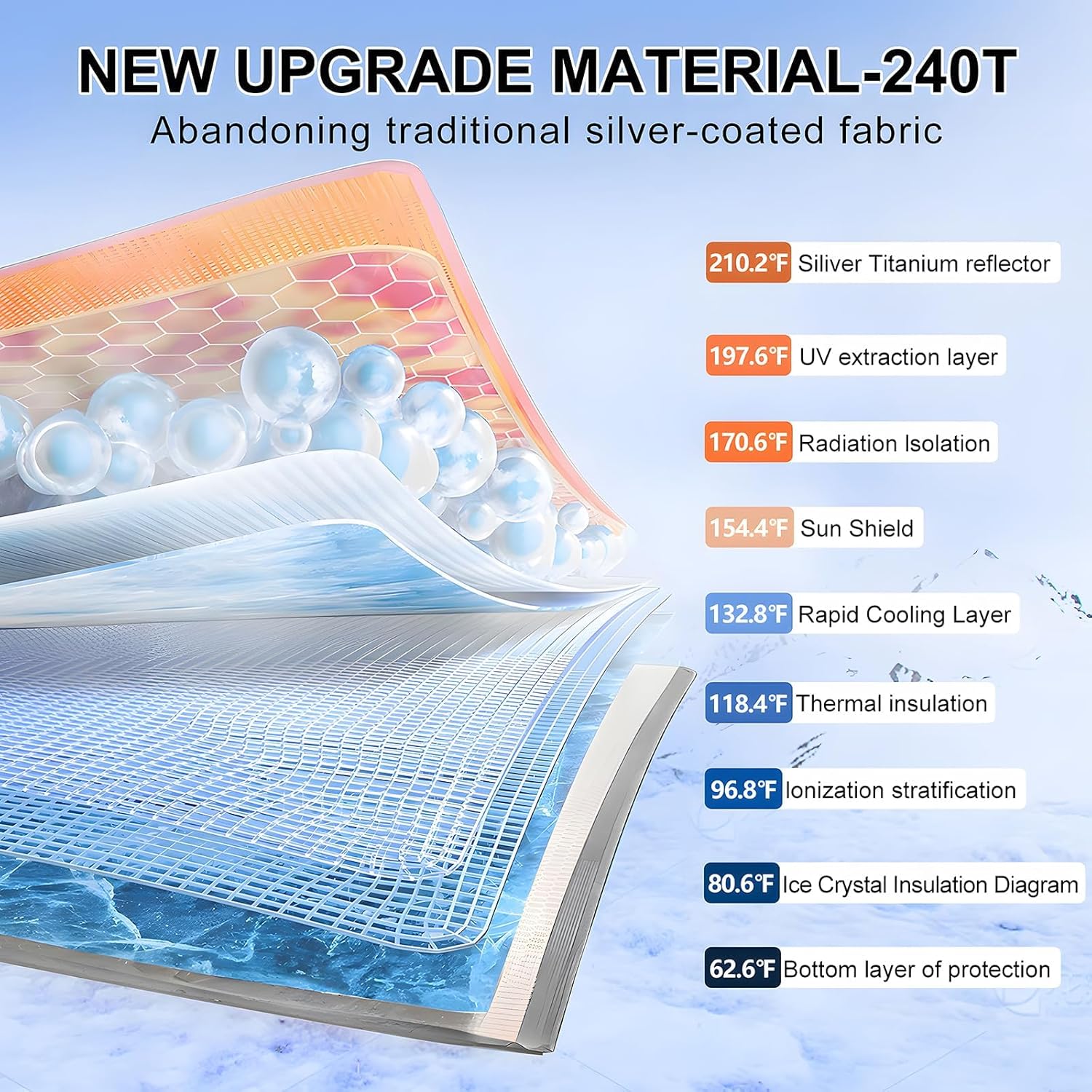 - Premium Material - Abandoning traditional silver-coated fabric, T TGBROS sun blocker for car windshield adopted a 310T high-density base fabric combined with a polyester fiber high-temperature reflective cooling coating, newly upgraded.