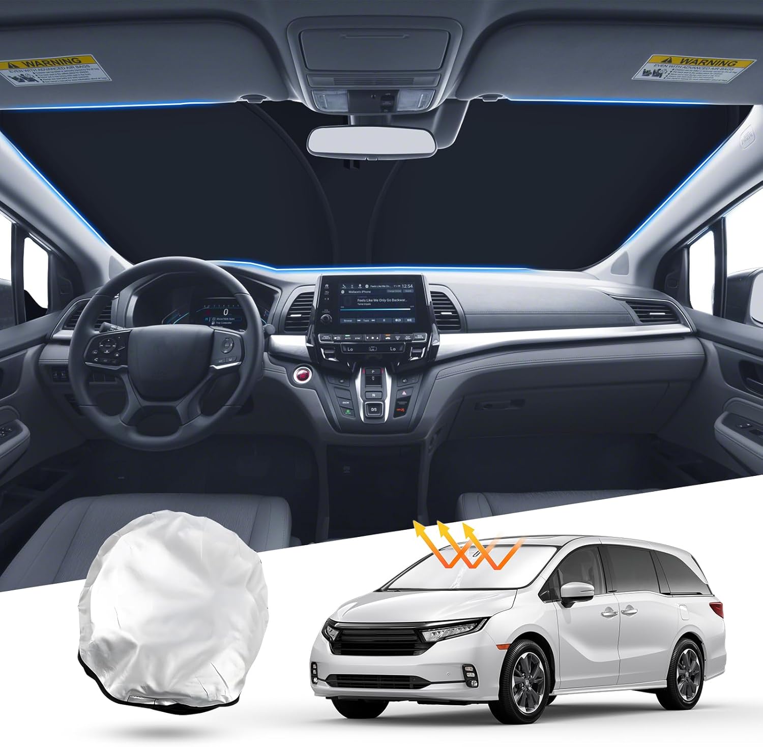 T TGBROS Windshield Sun Shade Custom Fit for 2018-2023 2024 2025 Honda Odyssey LX,EX,EX-L,Touring,Elite Minivan Accessories Foldable Sun Shield Reflective Polyester Sun Visor Cover Block Heat