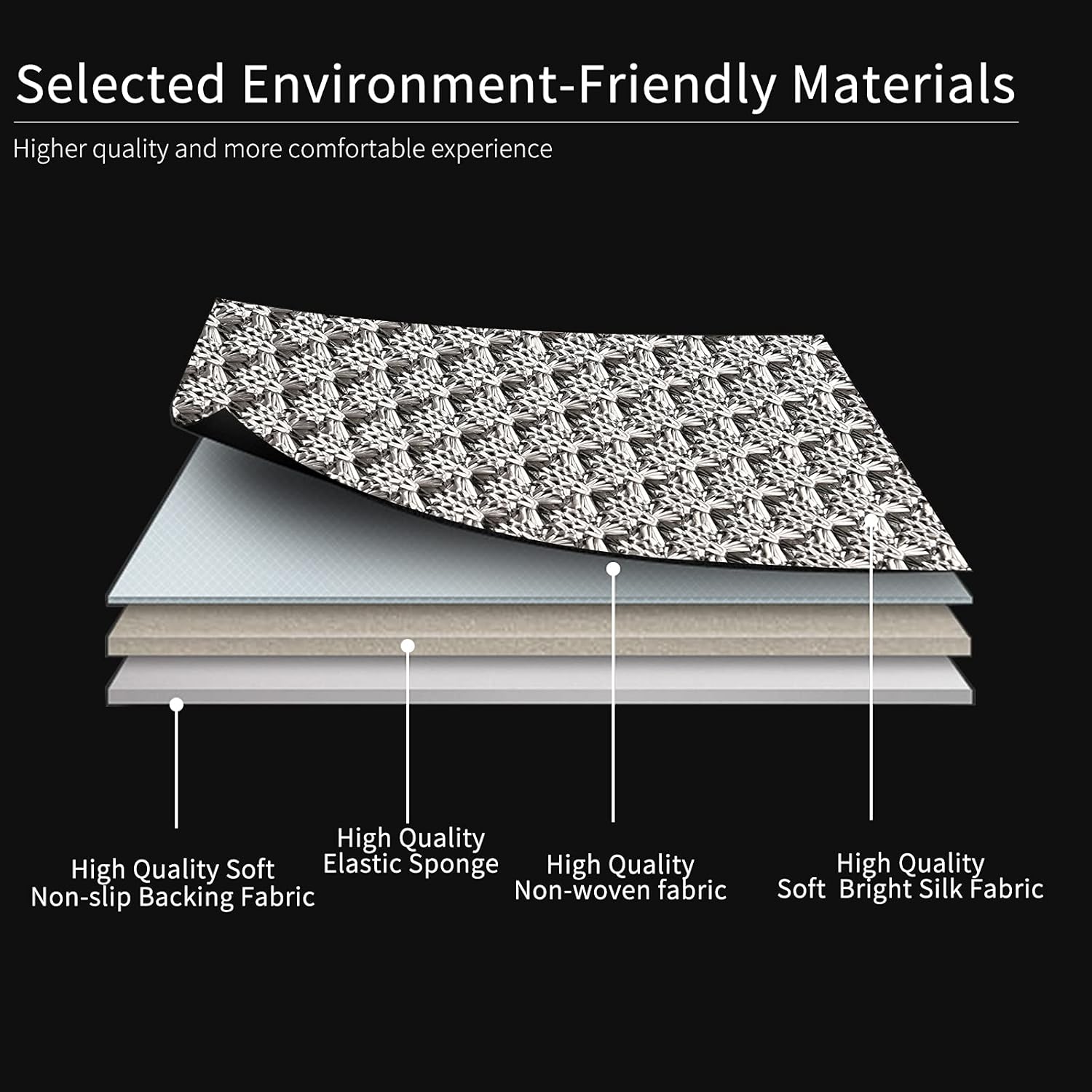 - Material Surface material : Bright Silk, Polyester, Middle material : Sponge, Back side material : Suede Velvet Surface material : Bright Silk, Polyester, Middle material : Sponge, Back side material : Suede Velvet See more : Auto Part Position Front