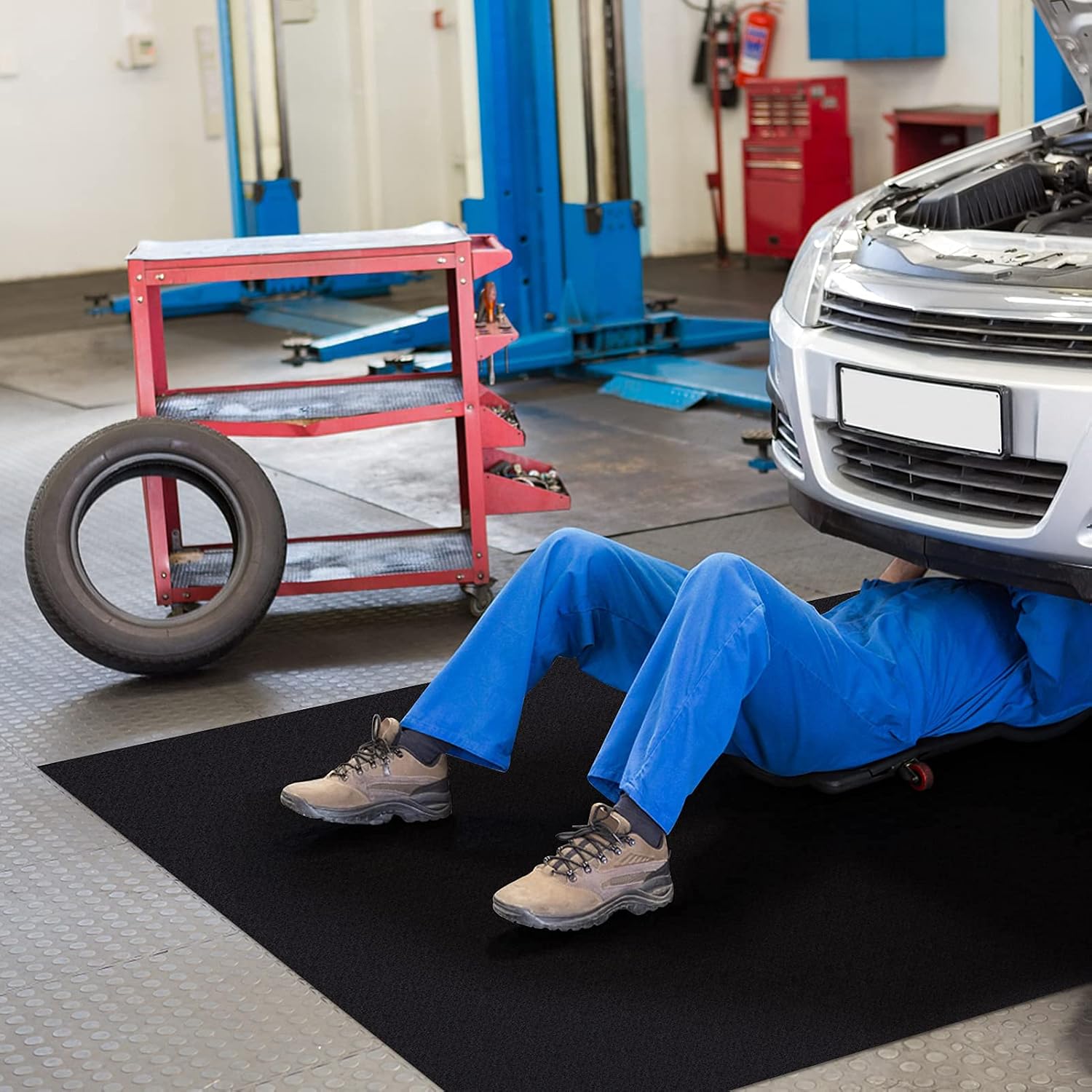 - [Highly Absorbent] The surface of our garage floor mat is made of premium synthetic fiber, which can effectively absorb and contain liquids such as water and oil, so that your garage floor stays clean.