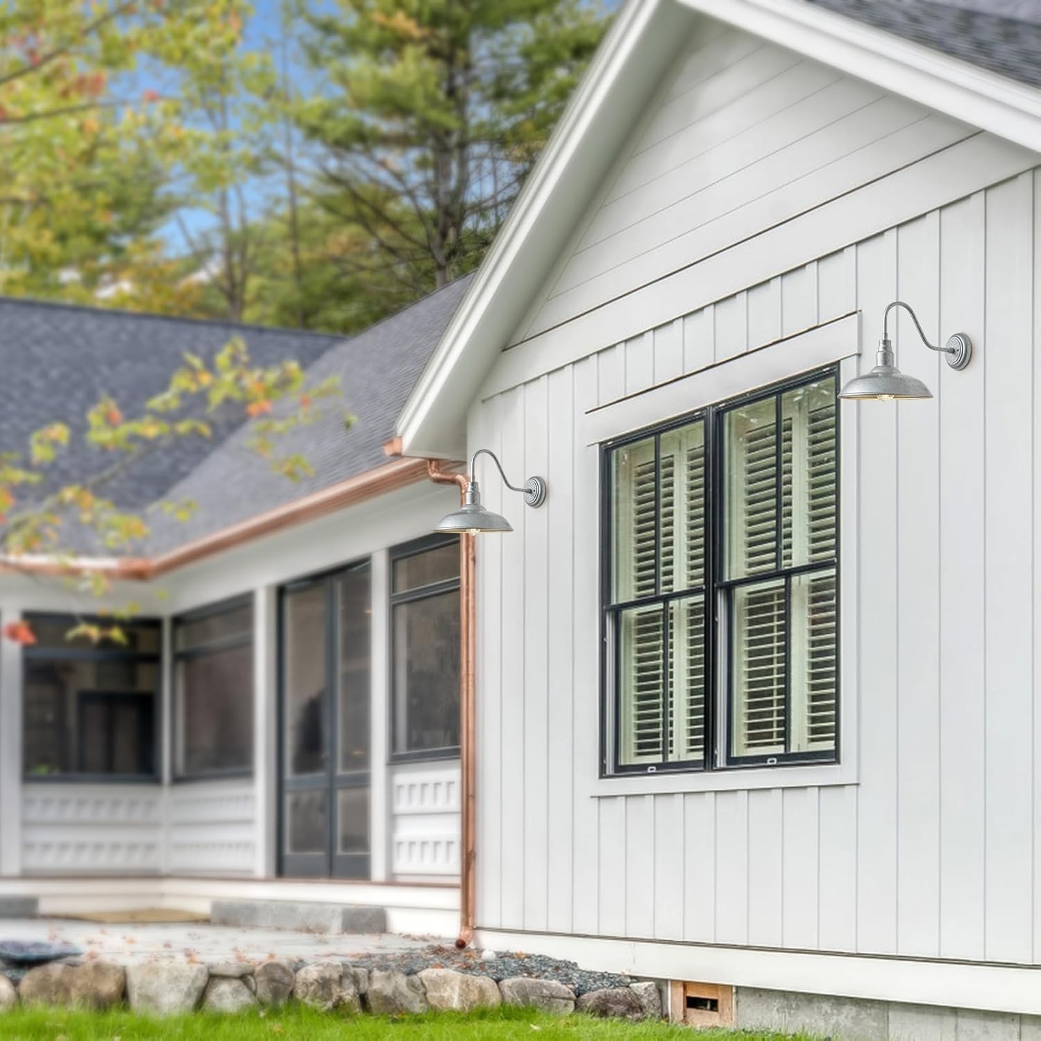 - Industrial Wall Light Fixture for Farmhouse, Garage, and Barn: With galvanized steel finish and classic gooseneck arm design, plus industrial dome, this outdoor barn light creates a pleasing look and a simplistic element.