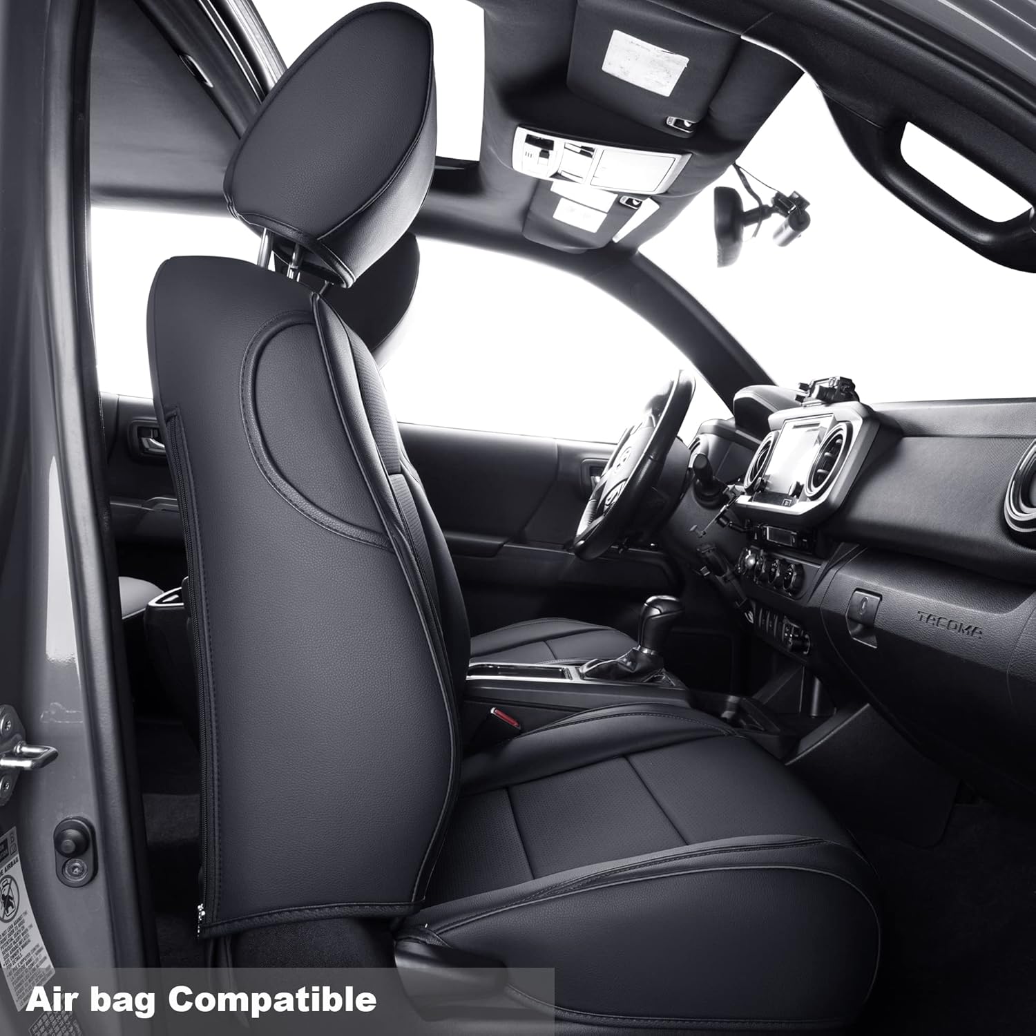 LUCKYMAN CLUB Tacoma Custom Fit Seat Covers for 2016-2023 Tacoma Crew Cab with Faux Leather (Black)