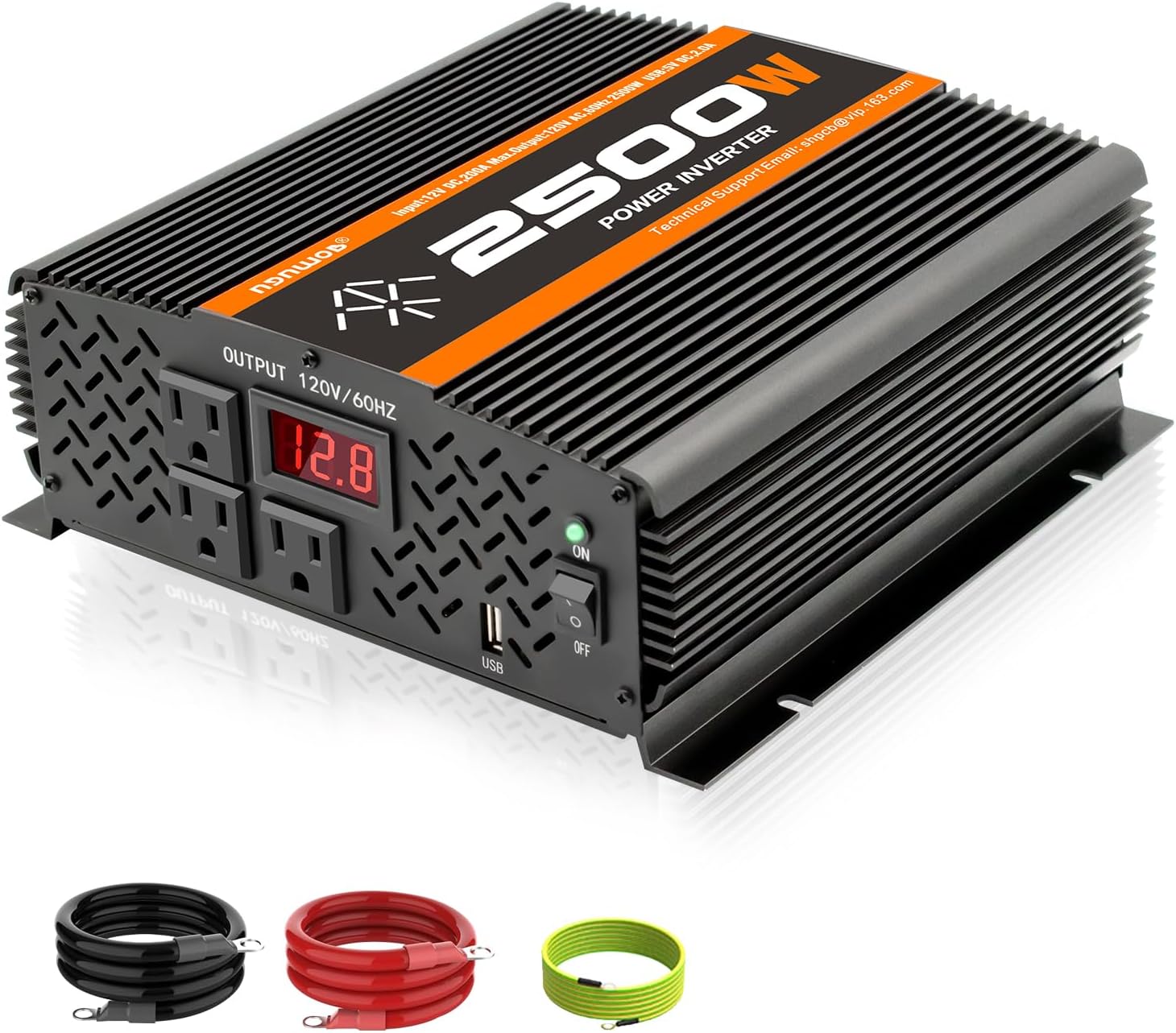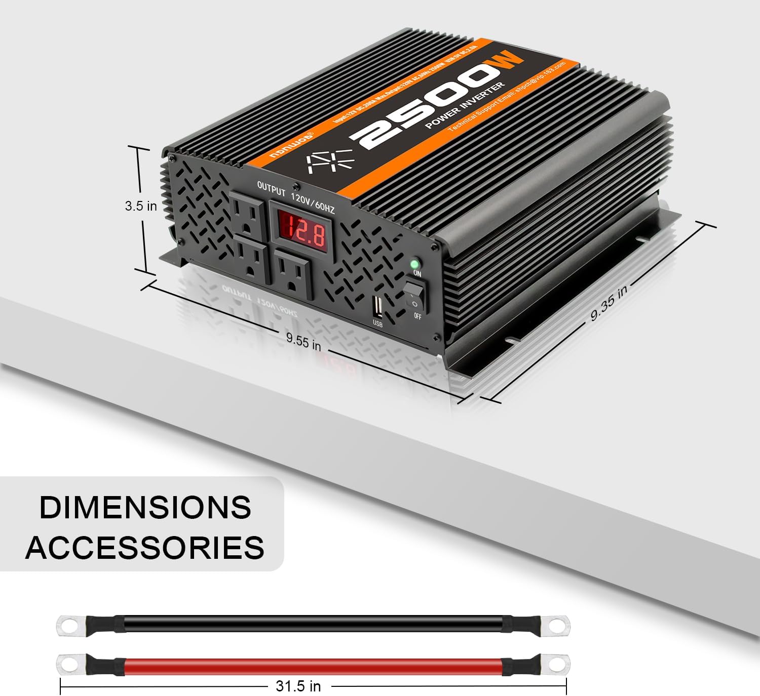 2500 Watt car Power Inverter 12V to 110V /120V, 2000+ watt invertor for RV semi Trucks Vehicles 12V to 110V Converter with 3 AC outles and LCD Screen - 2500W