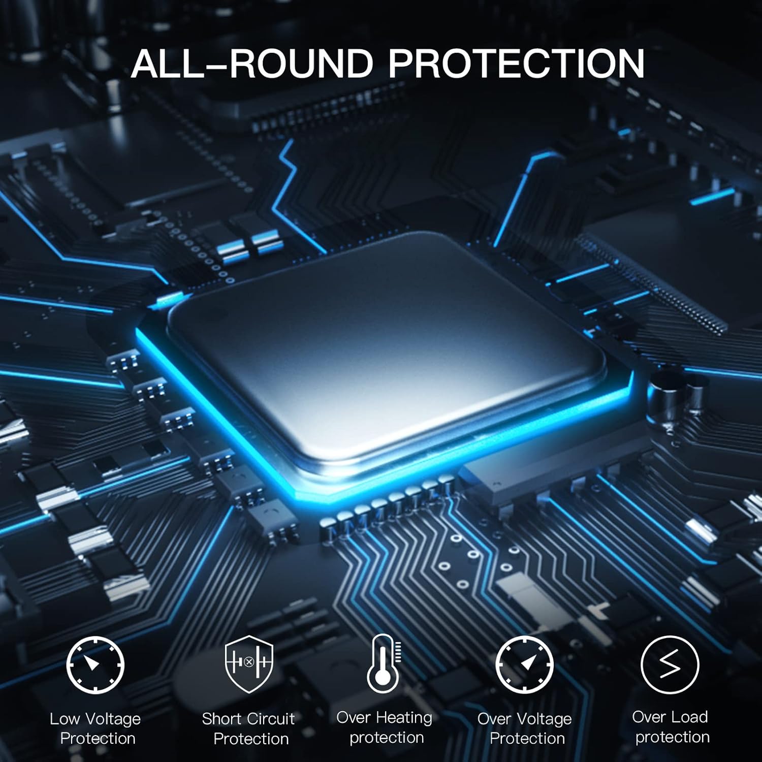 - 2.【Safe & Fast charging technology】:This car power inverter using safe charging technology provides protection against, overheating, under and over voltage charging, short circuiting, overloads, and overcharging; Fast charging technology enable its dual USB outlets to detect and provide corresponding optimal charging speed to your different devices.