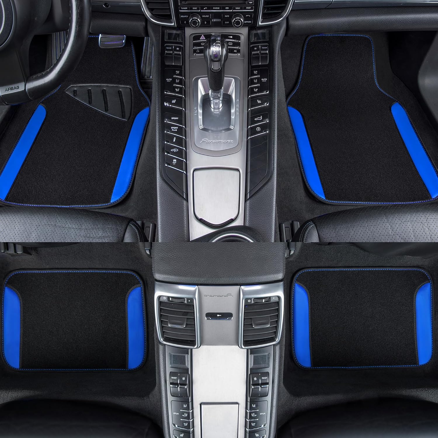 CAR PASS Rainbow Waterproof Universal Fit Faux Leather Car Carpet- Anti-Slip Nibbed Backing Floor Mats for SUV, Vans, Sedans, Trucks, Automotive Set of 4pcs (Black with Blue)