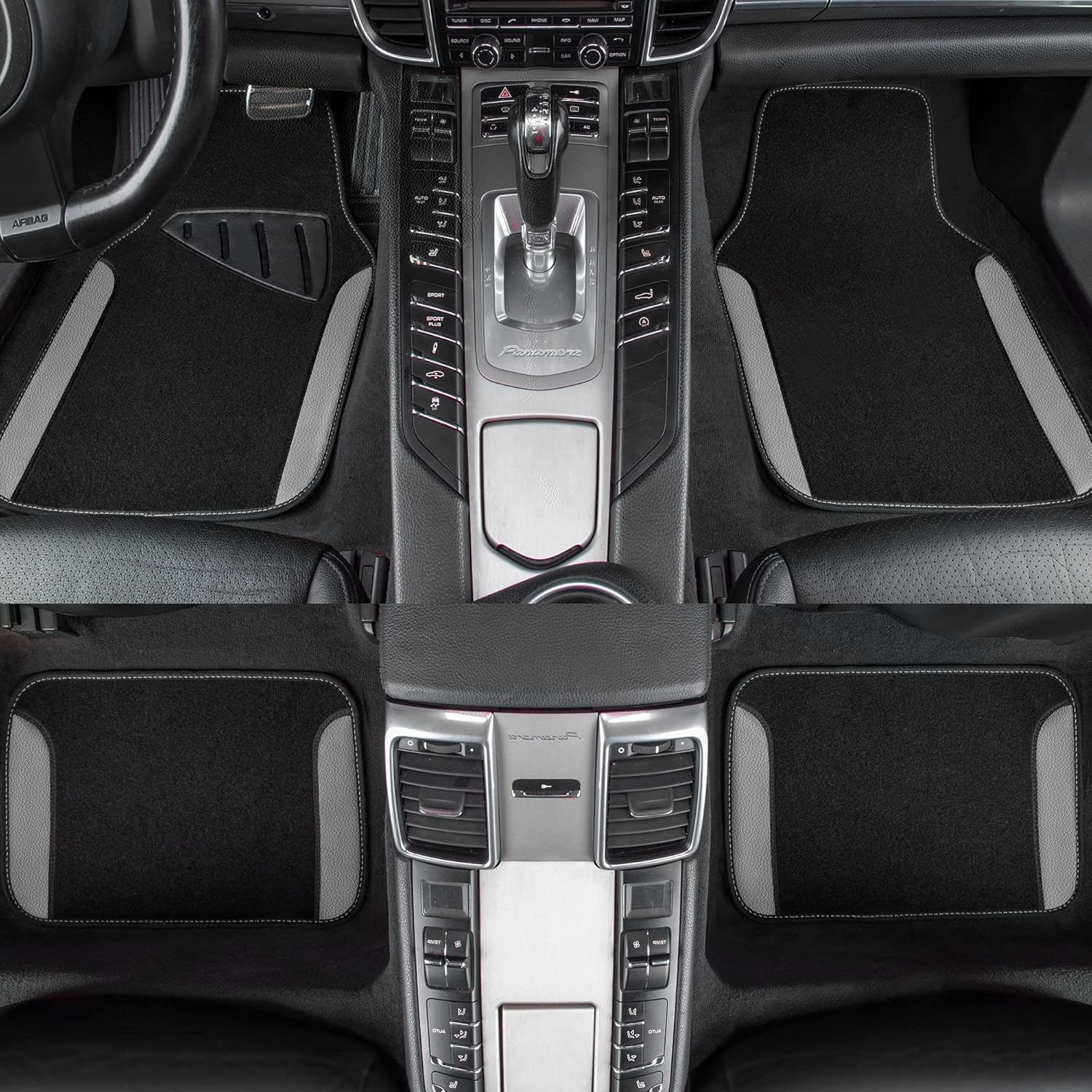CAR PASS Rainbow Waterproof Universal Fit Faux Leather Car Carpet- Anti-Slip Nibbed Backing Floor Mats for SUV, Vans, Sedans, Trucks, Automotive Set of 4 (Black with Gray)