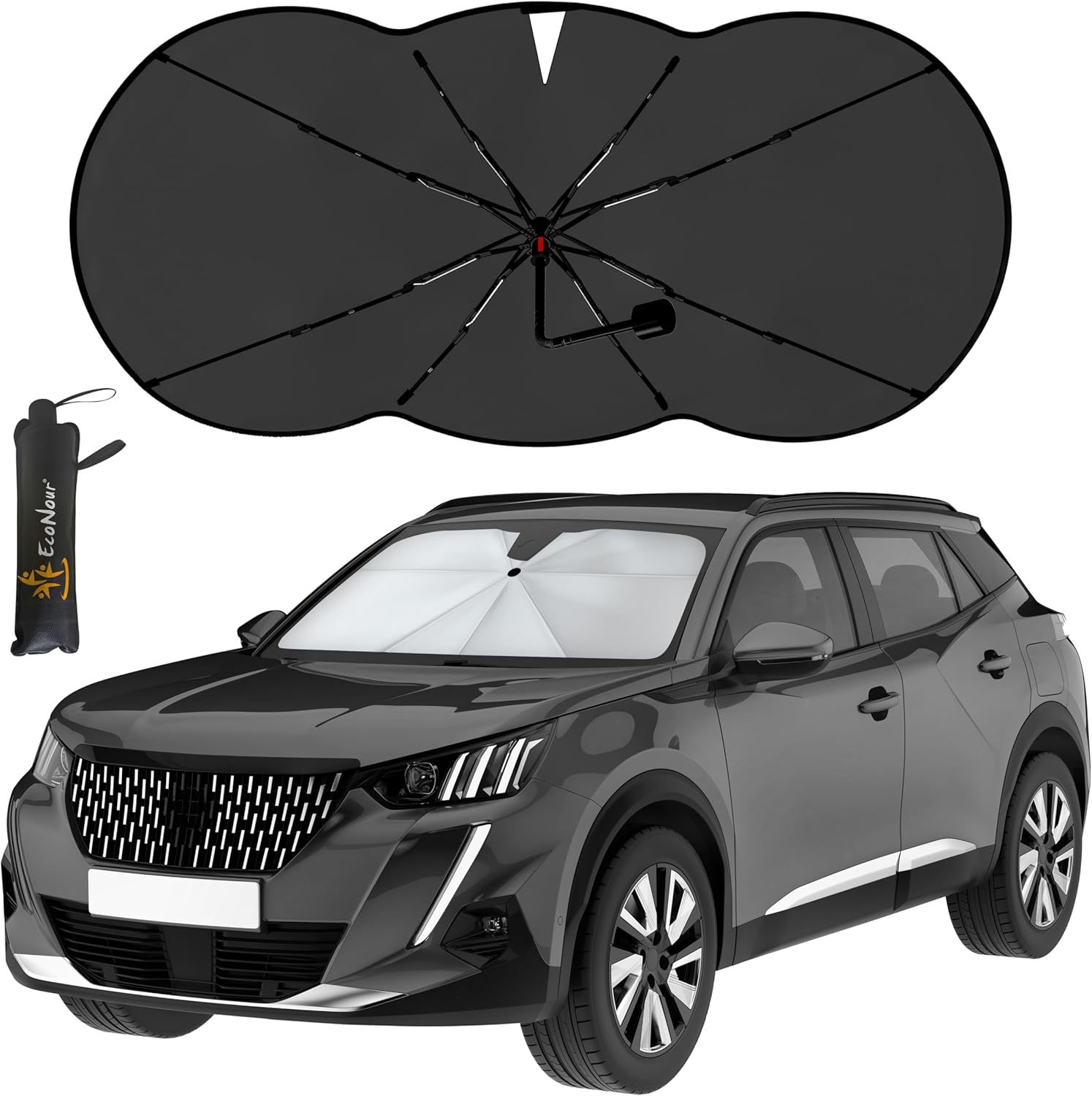 EcoNour Car Windshield Sunshade Umbrella | Foldable Car Umbrella Sun Shade Cover | Front Windshield Shade for Heat and UV Rays Protection | 240T Polyester Umbrella Sunshade | Large (57"x35")