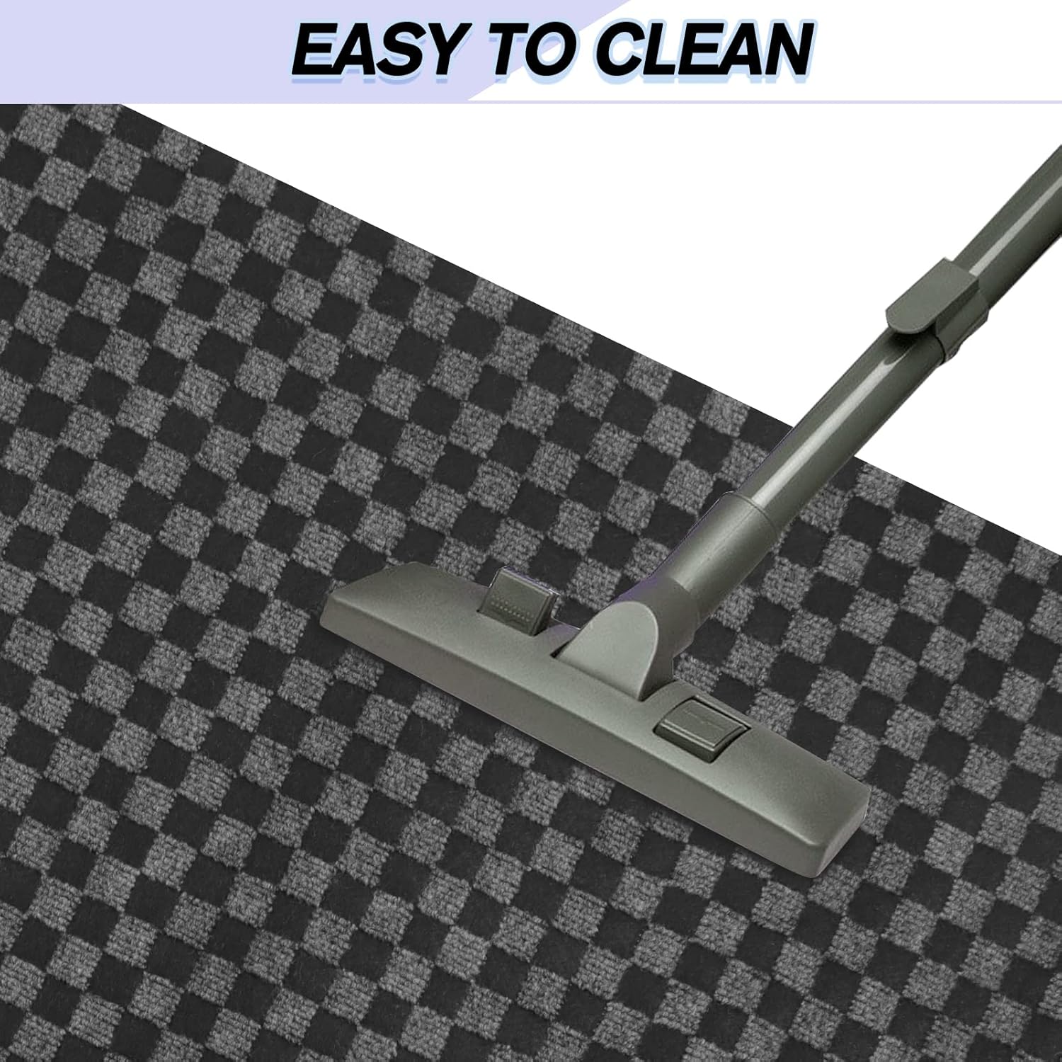 Custom Size Backed Non-Slip Area Rugs Runner, Easy Clean, Waterproof Runner Rugs for Hallway Entryway, Kitchen, Laundry, 2FT x 31FT, Gray Checkered
