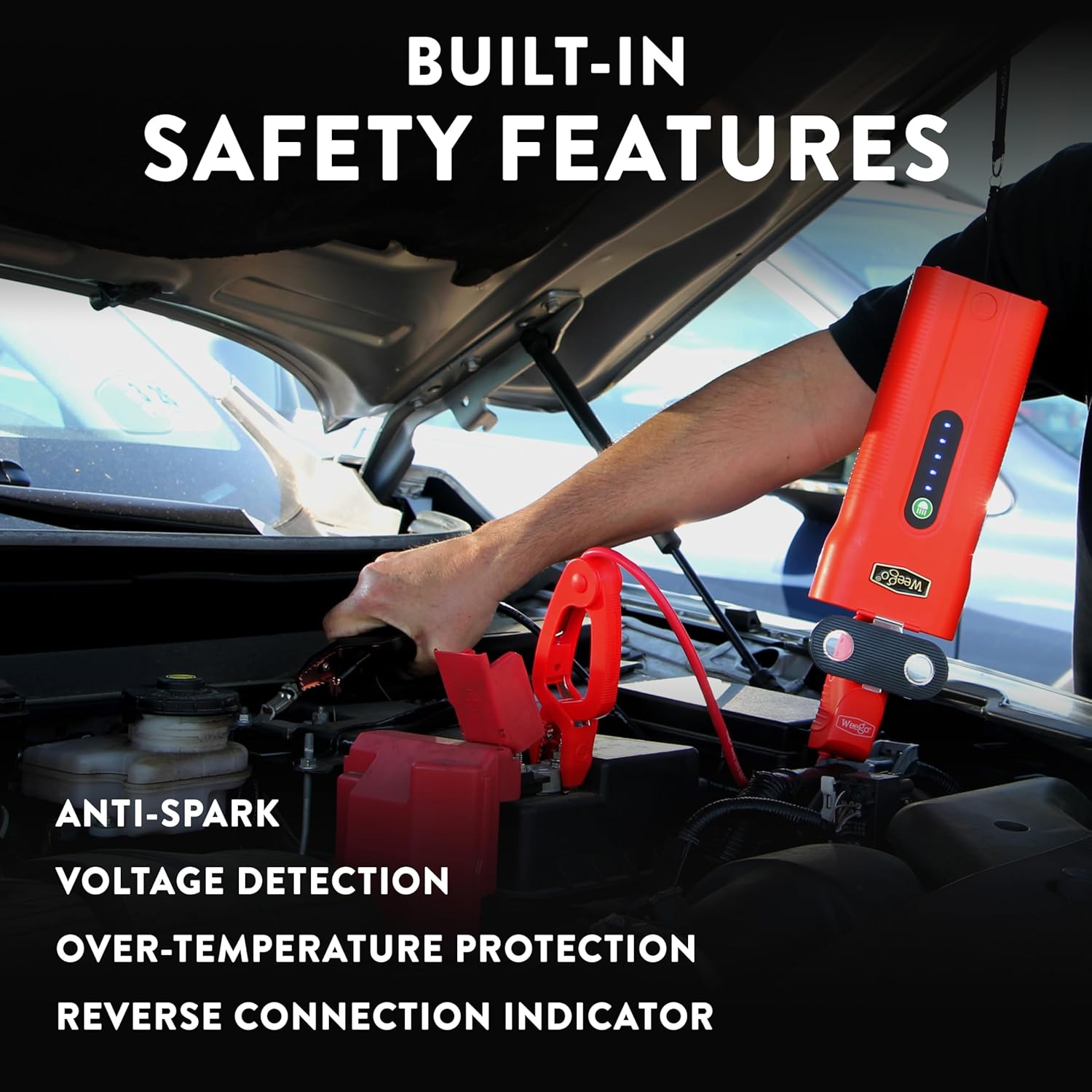 - LIGHTWEIGHT AND VERSATILE: Weego 70 battery jump starter weighs just 3.5lbs, contains a 400 lumen flashlight, and doubles as a portable power bank to charge USB and 12V devices.