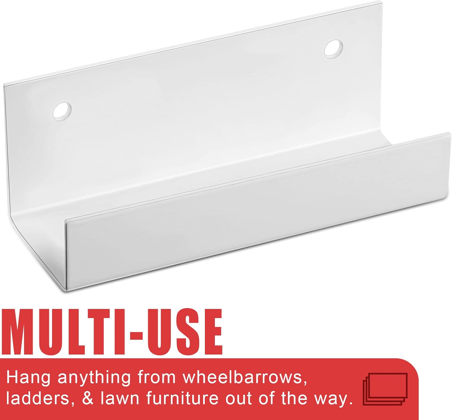 Blulu 4 Pieces Wall Mount Ladder Wall Wheelbarrow Hanger Steel Garage Storage Hook Wheelbarrow Hanger Heavy Duty Garage Storage Organizer for Hang Ladders Carts Chair Bicycle(White)