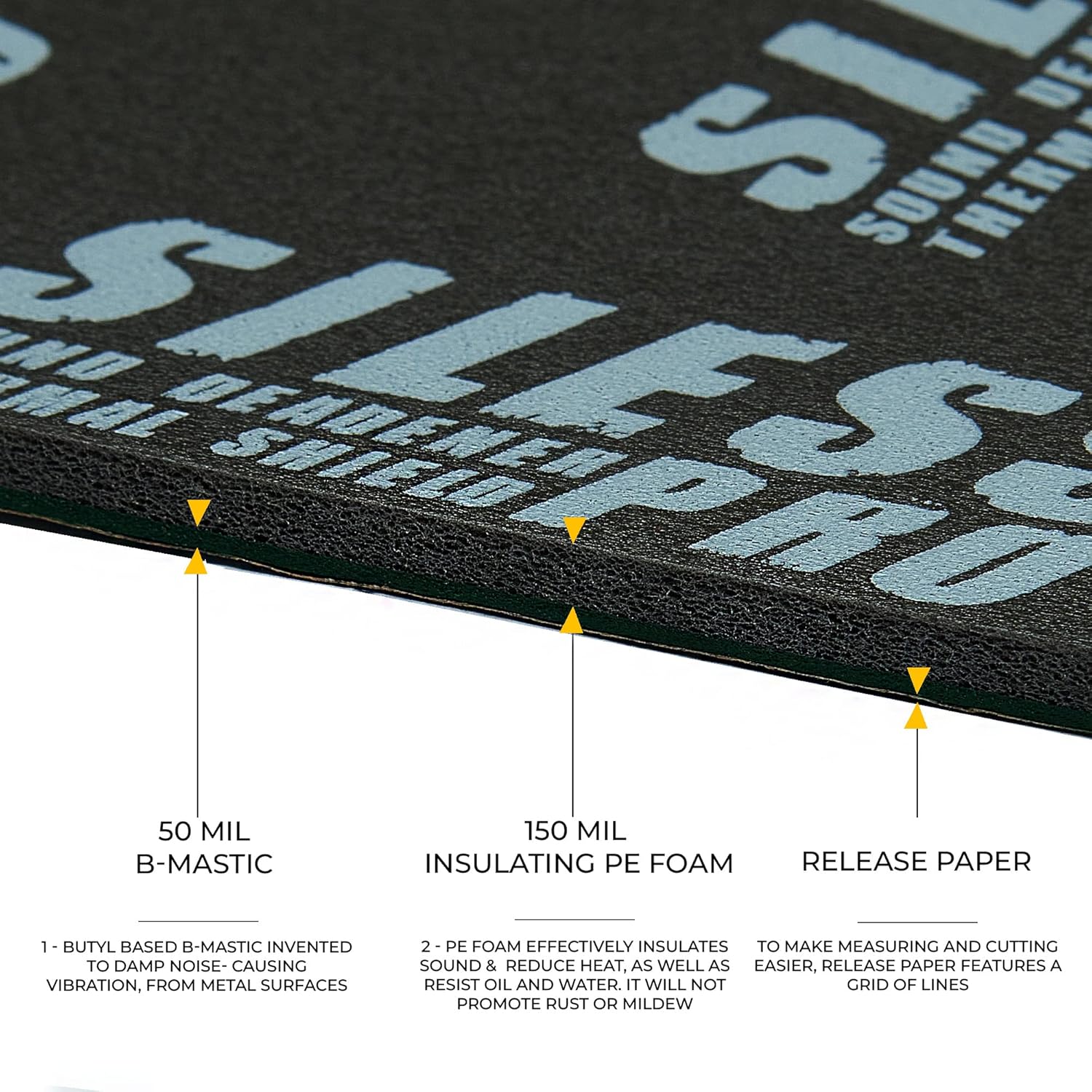 - SILESS LinerPRO 2in1 combine 157 mil Closed Cell Foam and 50 mil Bmastic. LinerPRO is a heavy, thick, two layer composite material, that solves two of the most difficult automotive problems: dampening sound vibrations and heat insulation. OIL and Waterproof LinerPRO closed-cell polyethylene foam is the best for car, it ensures optimum efficiency and vibro&thermal insulation that could be possibly gained. The price Siless LinerPro with similar characteristics is more then three times cheaper!