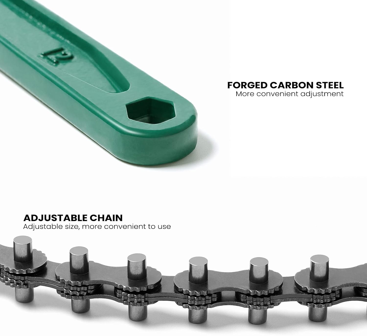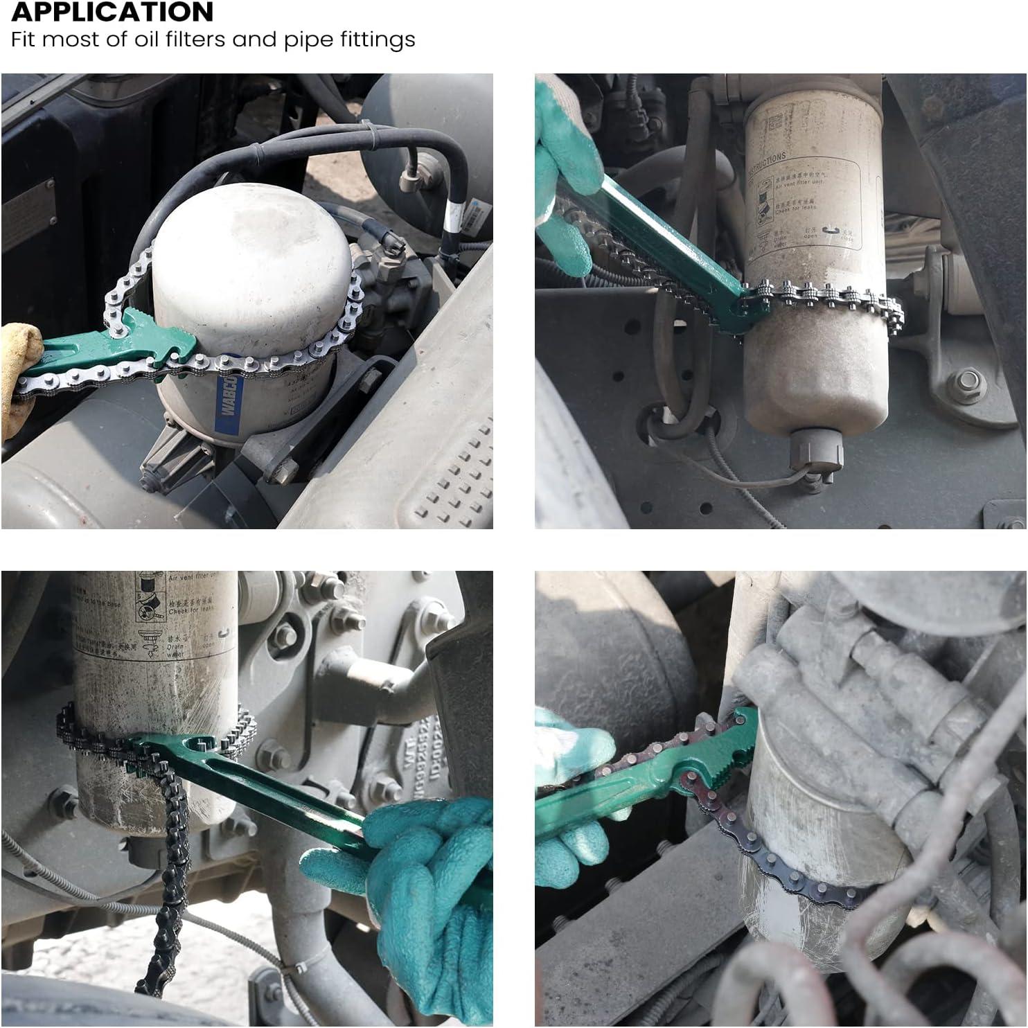 - 【Wide Application】- The length of the chain can be adjusted, fits most of pipe fittings and oil filters. Good tool for auto repair or pipefitter, plumber(Apply to:circular, square, hexagonal, octagonal spare parts, etc - if you can get the chain around it, you can spun it off).