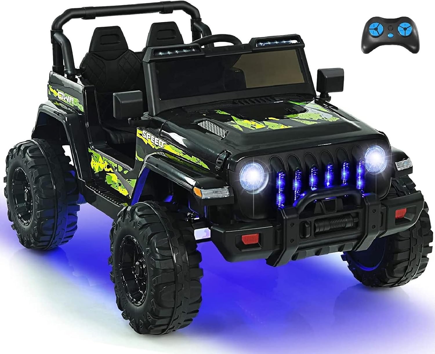 INFANS Kids Ride on Car Truck with 2.4G Remote Control, 12V Battery Powered Electric Cars for Kids w/3 Speeds, Battery Display, LED Lights, Safety Belt, Music & Horn, Bluetooth/FM/USB (Dark Black)