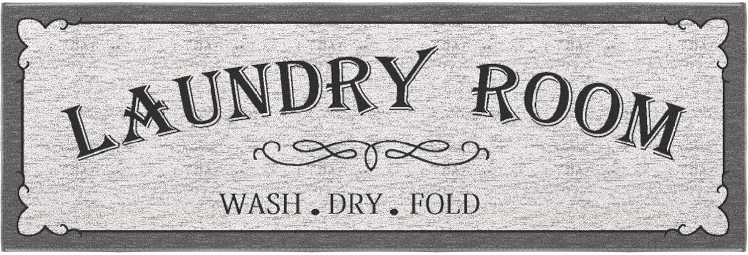 Ottomanson 20" x 59" Laundry Room Rug - Non-Slip Mat for Laundry & Mudroom - Durable, Stain-Resistant, and Easy to Clean - Perfect for High-Traffic Areas - Runner Rug for Entryway Bathroom, Gray