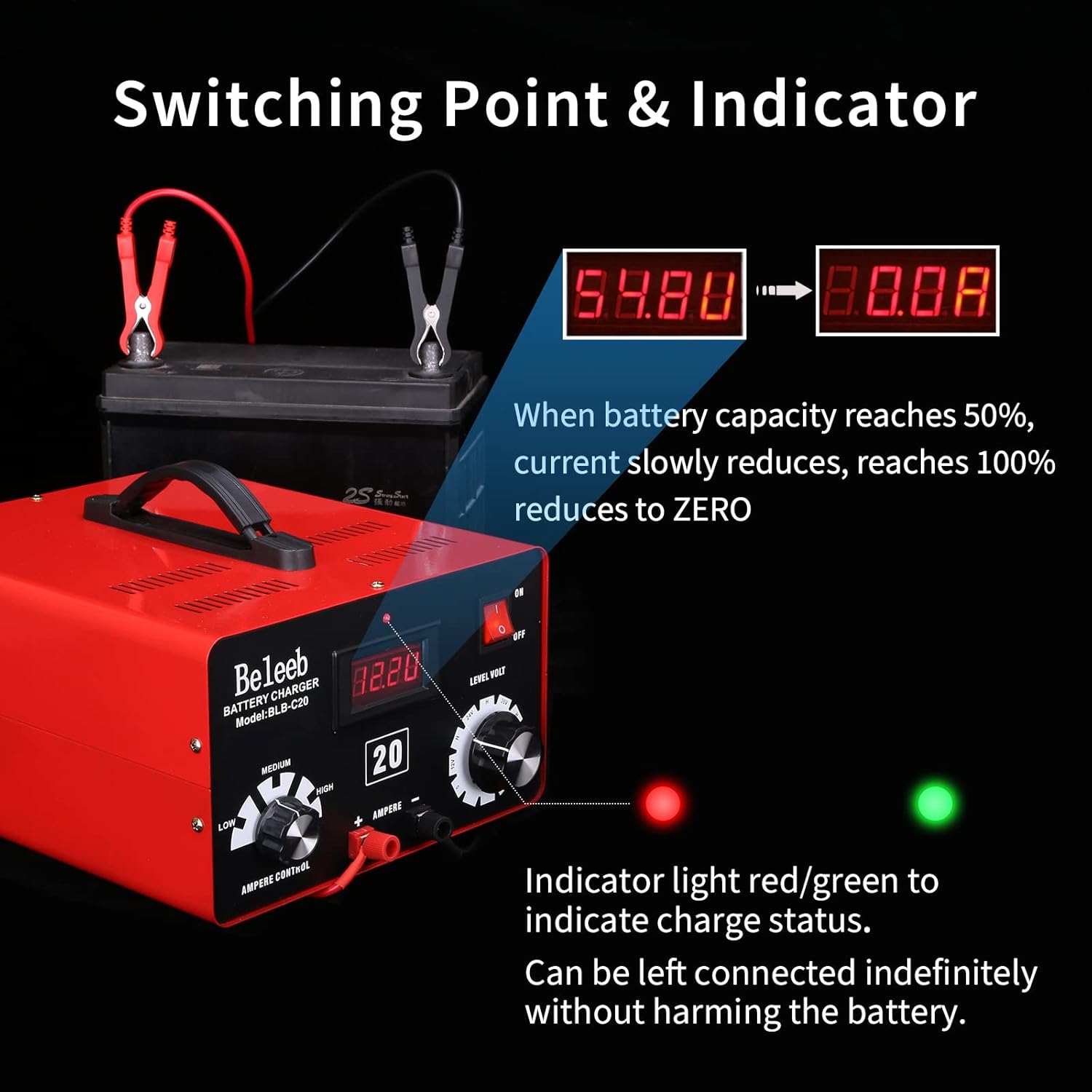- Connect it& Forget it>> Overload circuit breaker and automatic control chip give you full protection. Just plug it, charging your batteries 24/7 without worry. Please do not connect lithium LiFePO4 batteries without a BMS to the charger for a long time.
