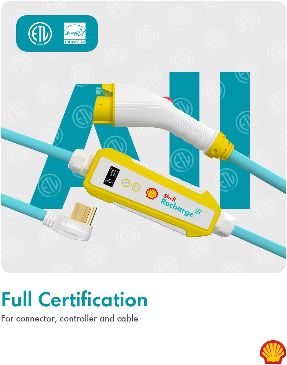 - 【Fully ETL Certified & Energy Star】Undergoing ETL Certification for the entire appliance, the Shell Level 2 EV charger ensures performance, safety, and reliability with both ETL certification and Energy Star accreditation. The connectors, controllers, and cables of the charger bear the ETL certification, guaranteeing safety and quality. Charge securely and confidently with the assurance of safety and quality standards!