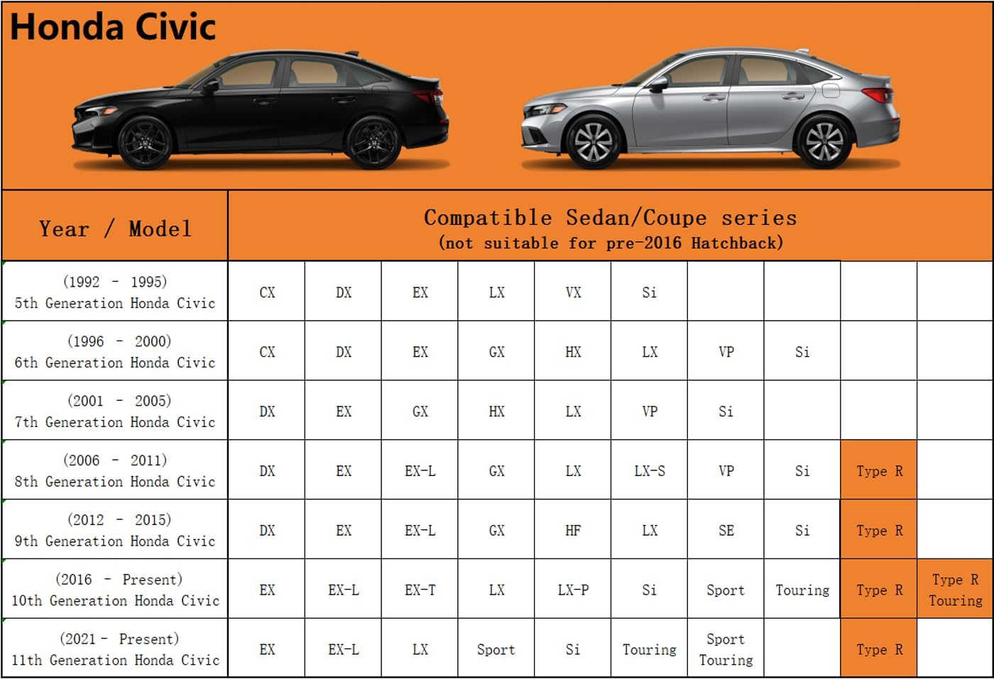 - Material Aluminum, Cotton : Vehicle Service Type Honda Civic Sedan (1991-2024)