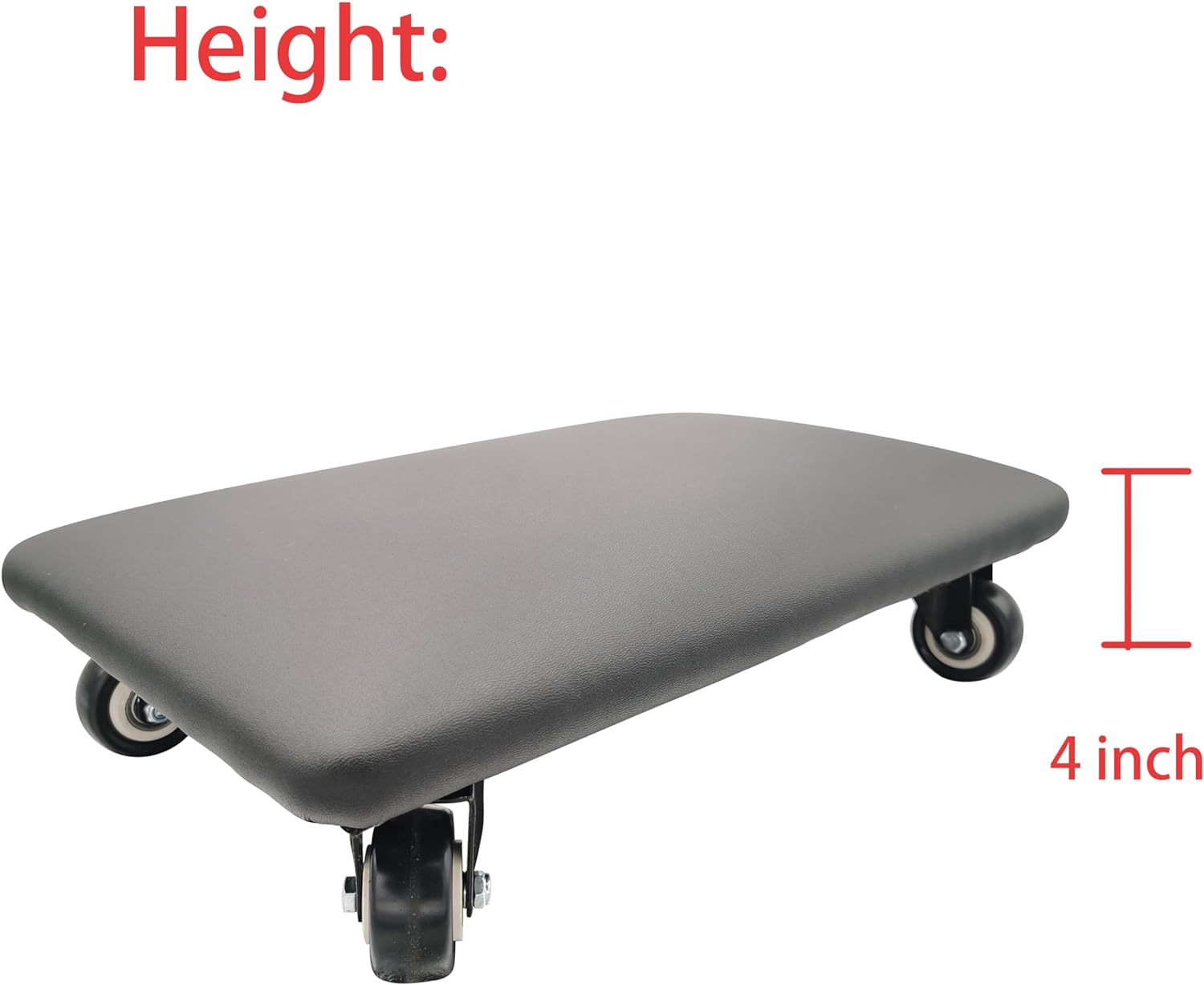 Roller Seat 360 Degree Rotating Low Stool with Wheel Chair PU Leather Universal Swivel Wheels Stool for Home Office Fitness and Garage (Rectangle Black)