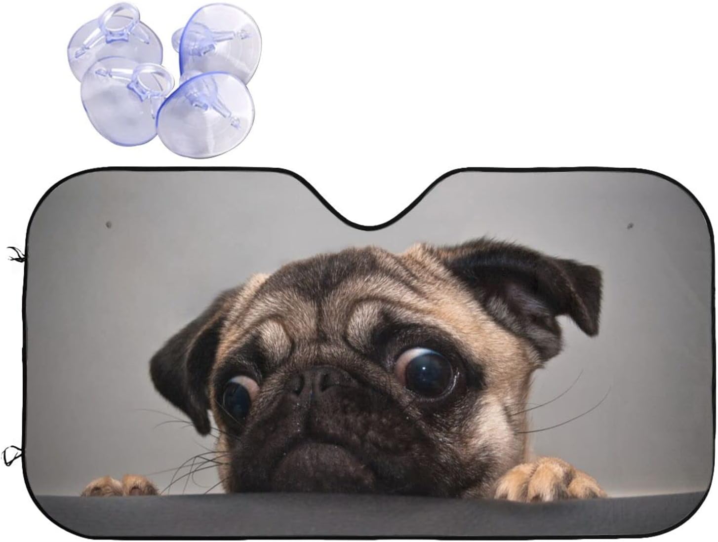 Pug Dog Car Windshield Sunshade Front Window Sun Visor Protector Foldable Shield Cover for Truck SUV